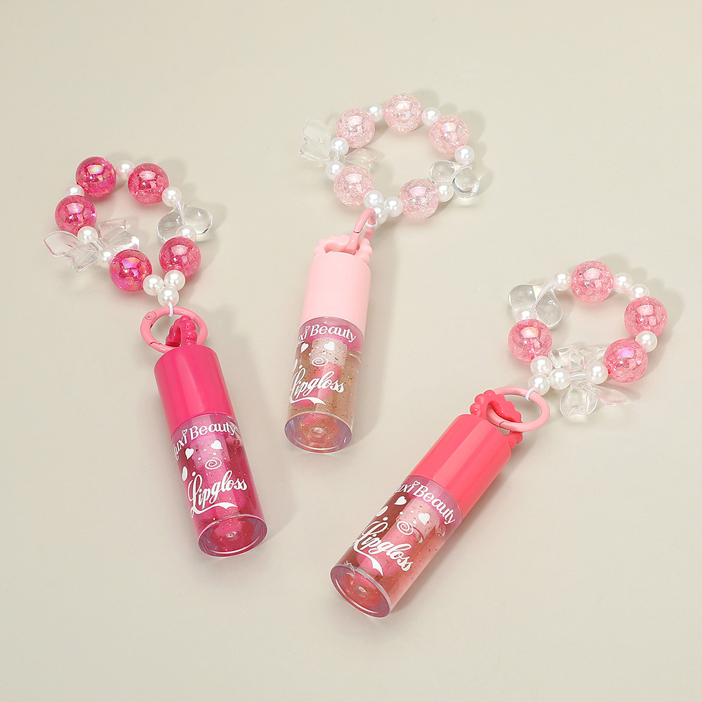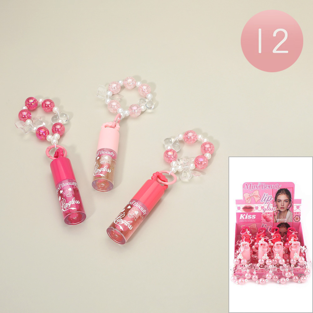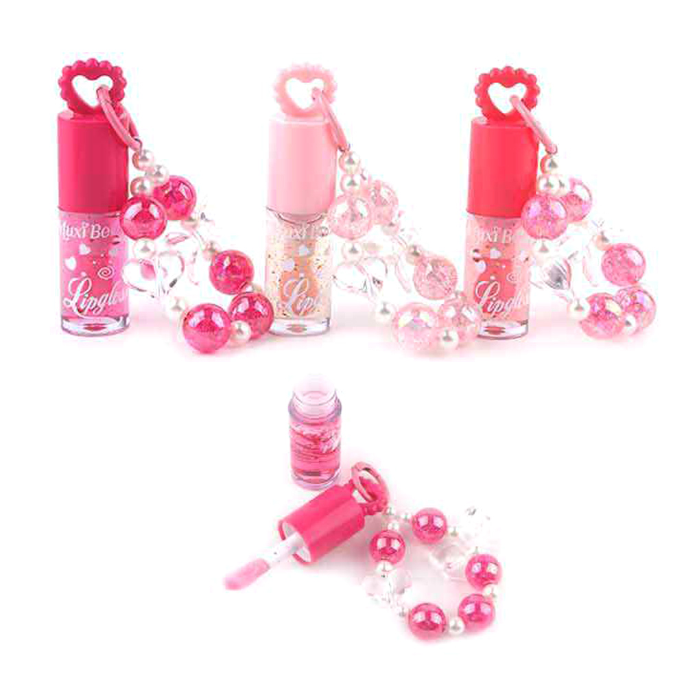 Details • Size : 3.5" L • Charm Size : 2.5" X 3.25" • Fun lip gloss accessory designed with a beaded bracelet and attached gloss charm for easy carrying. This playful beauty item combines fashion and function, making it perfect for party favors, gifts, or novelty displays. A trendy accessory that adds excitement to everyday routines and appeals to young beauty lovers.