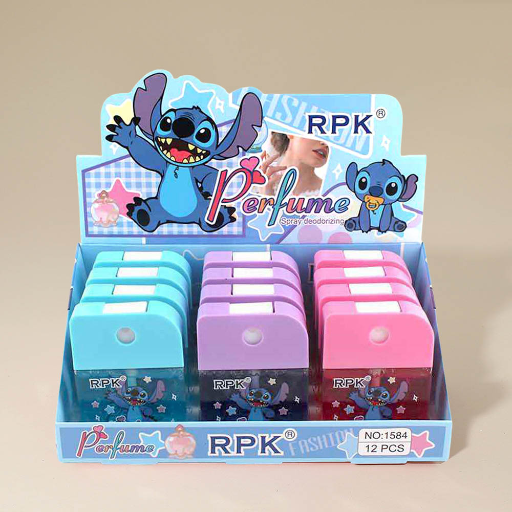 Details • Size : 30ml • Discover the Pink in Sweet fragrance mist set, designed with fun character-themed packaging. This 12-pack display is perfect for gifting, personal use, or retail. Refreshing scent in compact spray bottles makes it ideal for travel, everyday wear, and adding a playful touch to your fragrance collection.