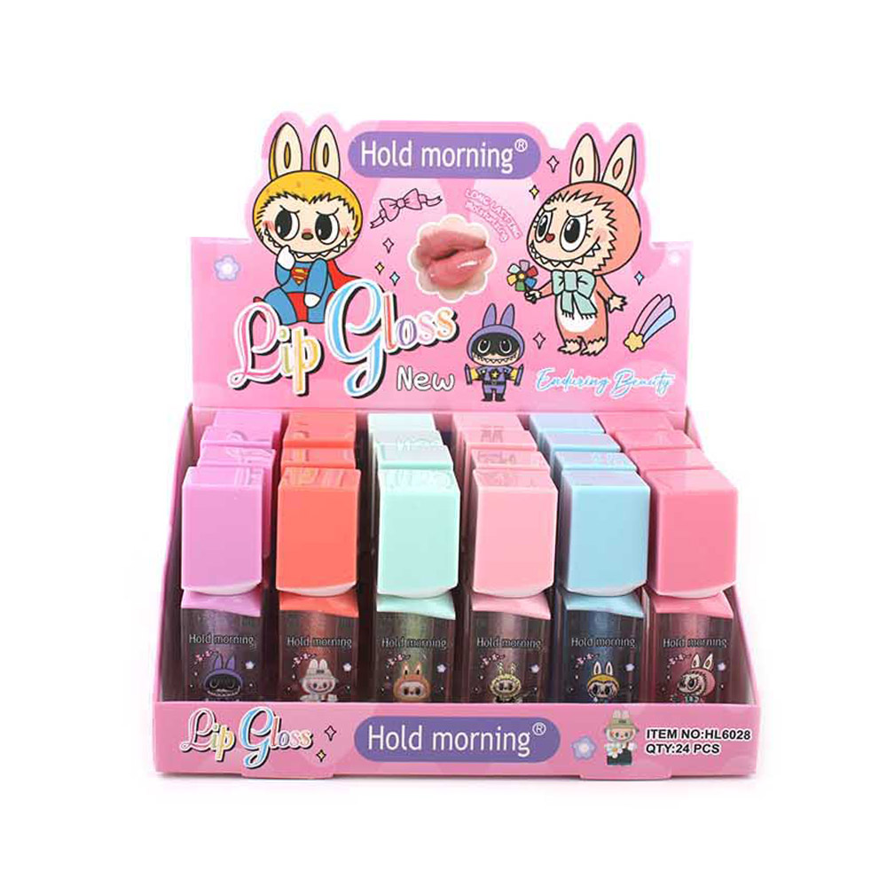 Details • Size : 0.8" X 3" • Bring playful charm to your beauty collection with the Hold Morning Lip Gloss Set. Featuring 24 long-lasting, moisturizing glosses in cute packaging, this display offers a smooth, glossy finish for soft, hydrated lips and makes an eye-catching retail counter essential.