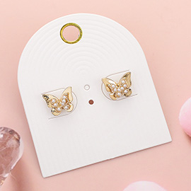 12 Set of 3 - Round Colored Pearl Stud Earrings