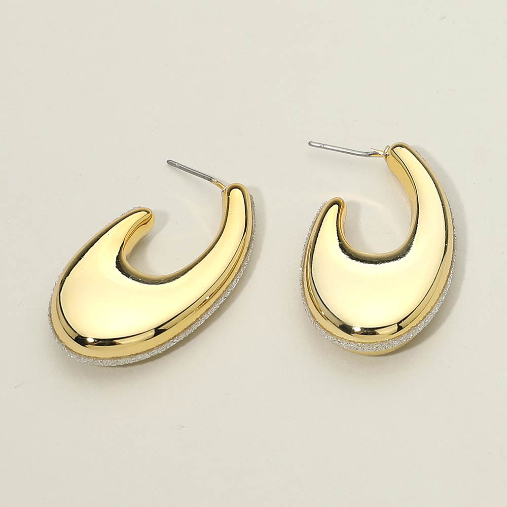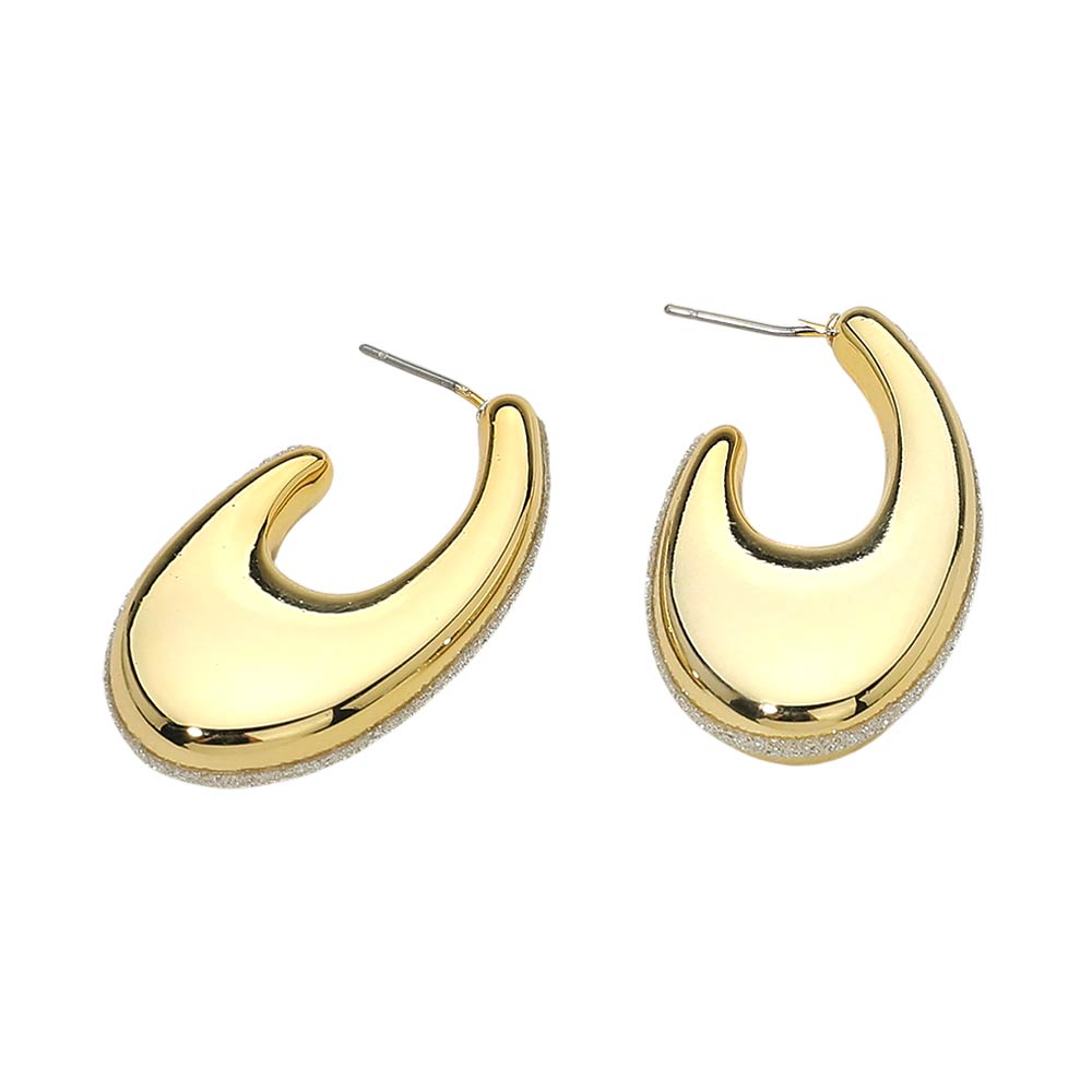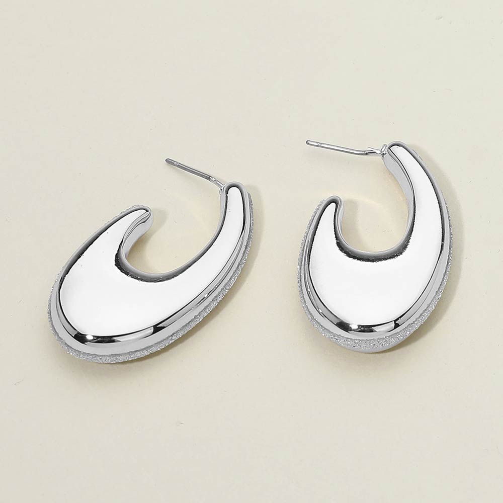 Details • Size : 1" X 1.25" X 0.5" • Post Back • Bold crescent-shaped hoop stud earrings designed with a smooth sculpted silhouette and modern volume. Lightweight and comfortable for everyday wear, they add a confident statement to casual and elevated looks. Perfect for daily styling, gifting, travel, and trend-driven accessory collections.