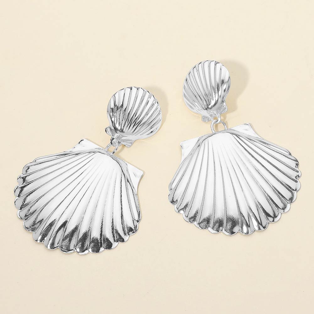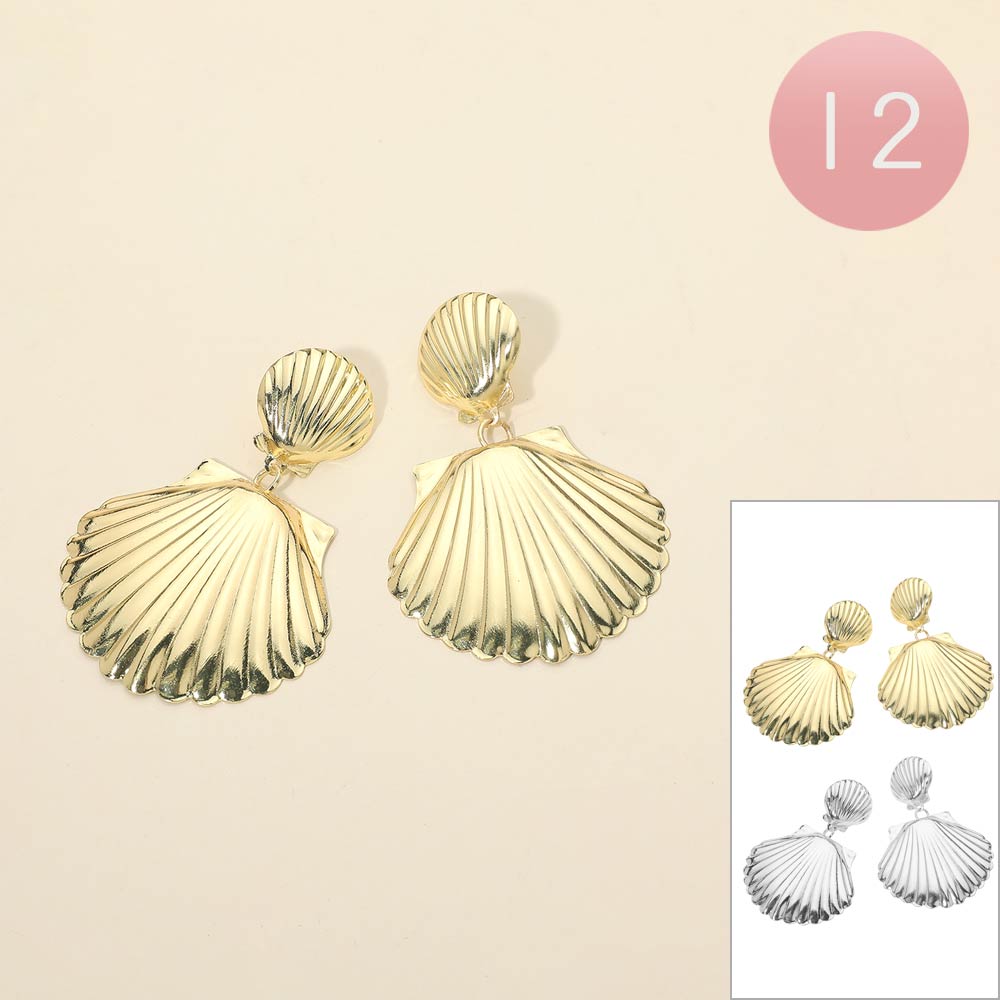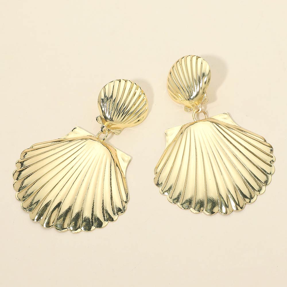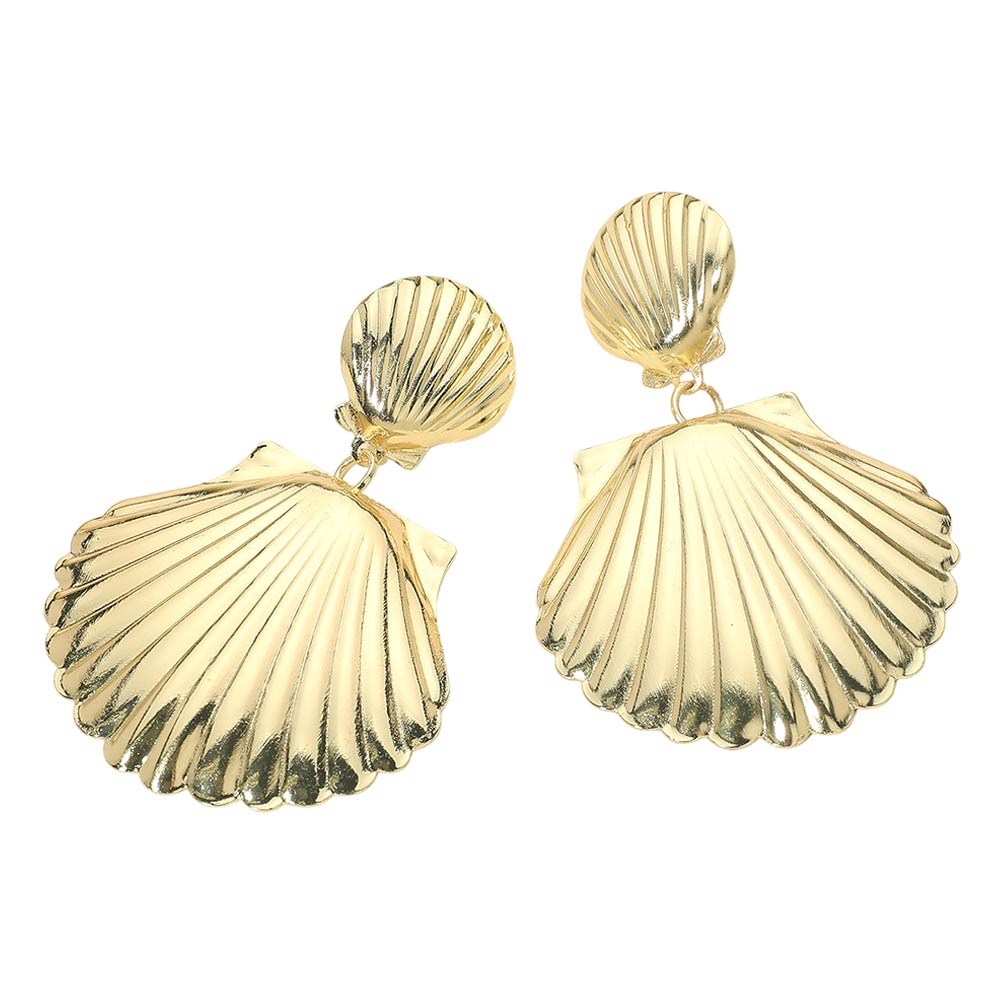 Details • Size : 1.75" X 2.5" • Post Back • These shell drop statement earrings feature a sculpted seashell silhouette with dimensional texture and an elegant drop design. Perfect for resort wear, vacations, summer outfits, or everyday styling, they add a bold yet refined coastal touch that elevates both casual and dressy looks.