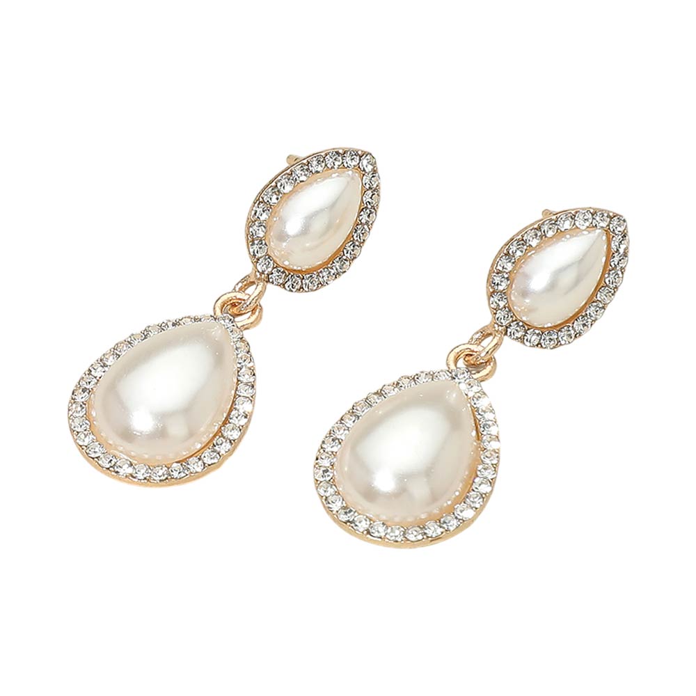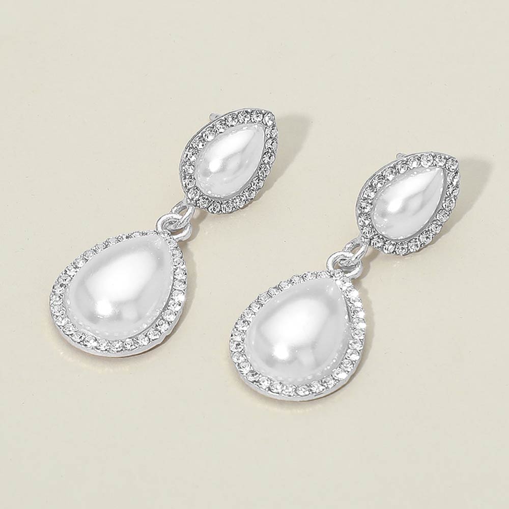 Details • Size : 0.75" X 1.7" • Post Back • Elegant drop earrings featuring a double teardrop silhouette with smooth luminous accents framed by delicate halo detailing. Designed for graceful movement and refined shine, they are lightweight and comfortable. Ideal for weddings, formal events, parties, and gifting with timeless, sophisticated appeal.