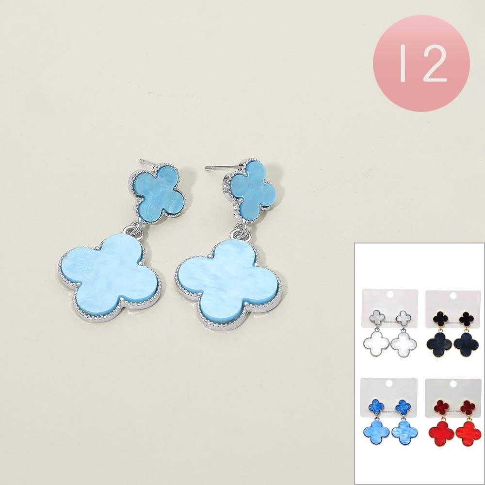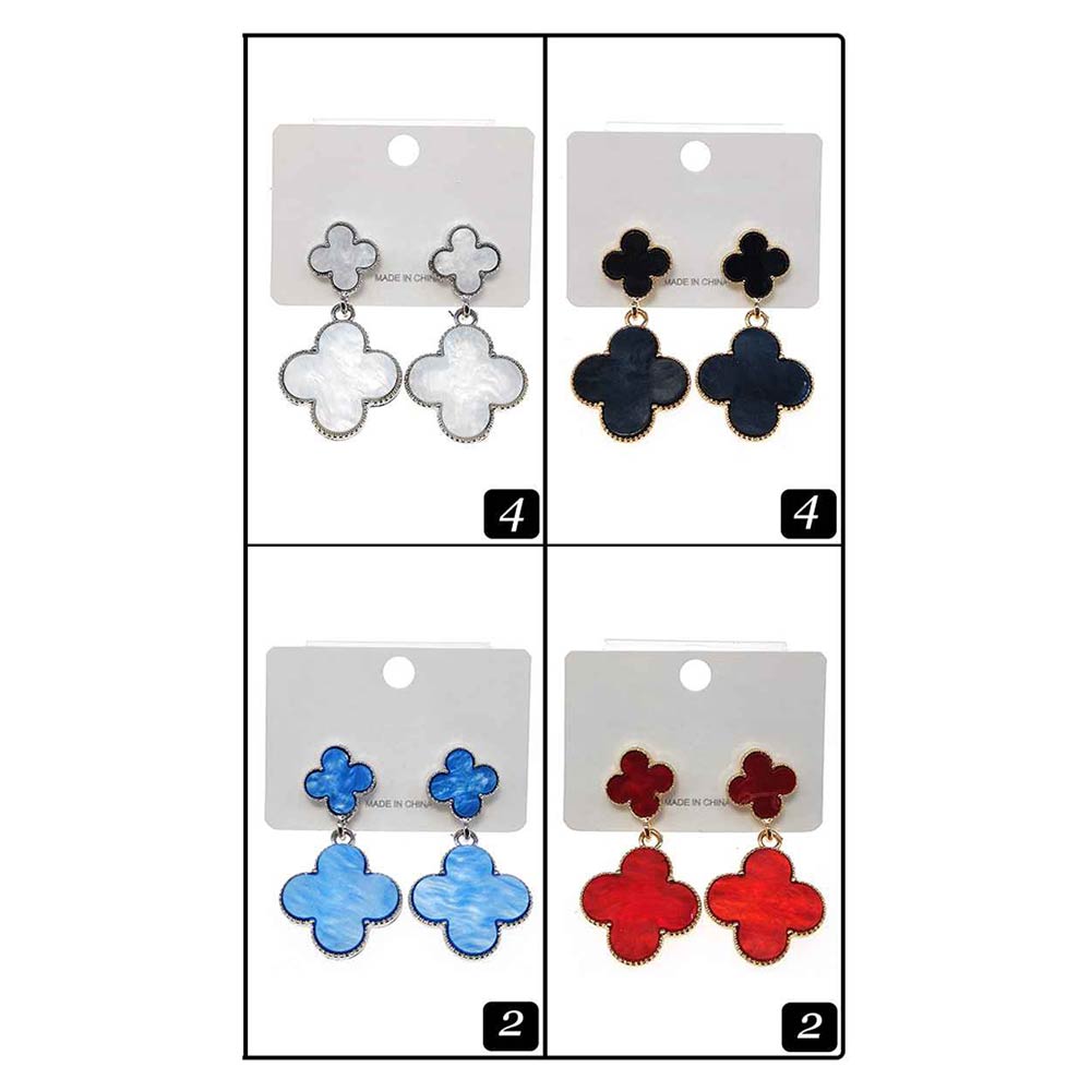 12Pairs - Double Quatrefoil Drop Earrings