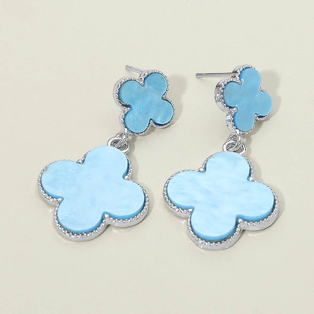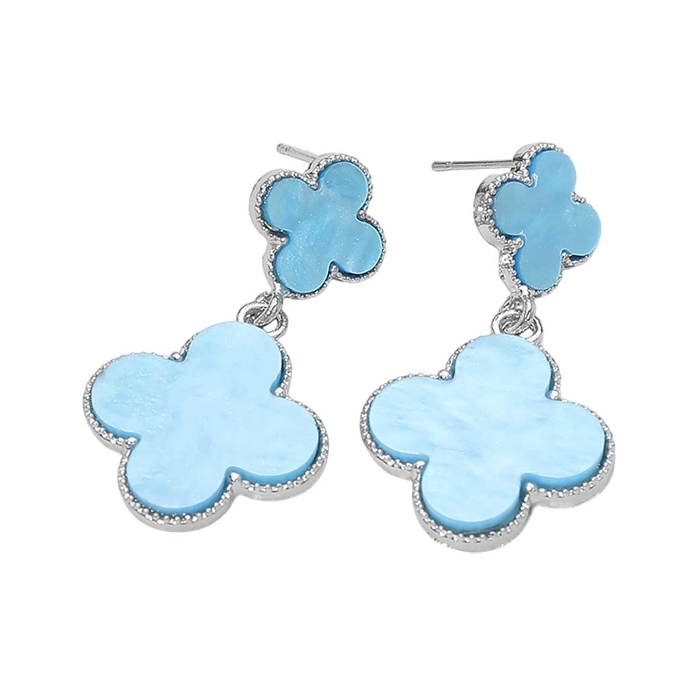 • Stylish drop earrings featuring a quatrefoil-shaped stud and matching dangling charm with a smooth, polished inlay. Designed with graceful movement and a balanced silhouette, these earrings offer a refined yet playful look, making them ideal for everyday styling, special occasions, gifting, and curated boutique accessory collections.