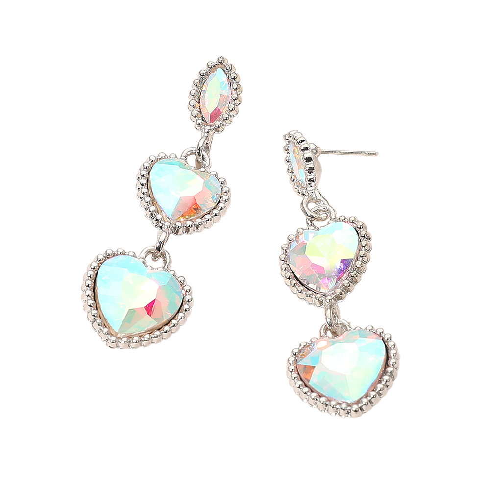Details • Size : 0.75" X 2.25" • Post Back • Elegant cascading heart drop earrings with a tiered design that adds eye-catching movement and shine. Lightweight and comfortable for daily wear or special events, these statement earrings elevate outfits effortlessly and make a thoughtful, ready-to-gift accessory.