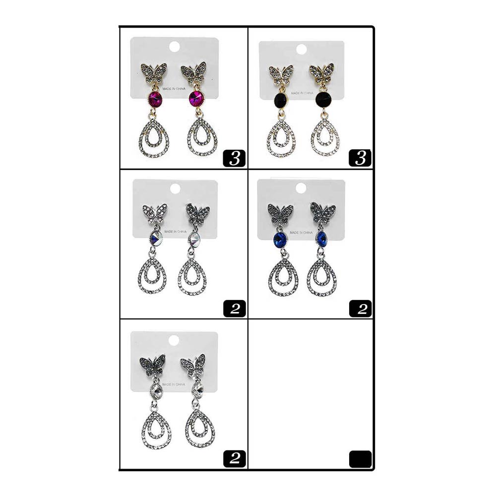 Details • Size : 0.8" X 2" • Post Back • Elegant drop earrings featuring a delicate butterfly stud paired with a layered teardrop silhouette and faceted accent. Designed for graceful movement and refined sparkle, they are lightweight and comfortable. Ideal for weddings, parties, formal events, and gifting with timeless appeal.