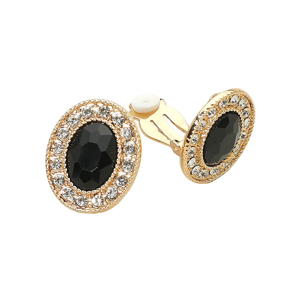 Details • Size : 0.75" X 0.8" • Clip On • Add timeless elegance with these oval clip-on stud earrings, accented by a sparkling rhinestone halo. Comfortable for non-pierced ears, these versatile earrings elevate any outfit, making them ideal for weddings, evening events, or everyday wear with a touch of refined glamour.