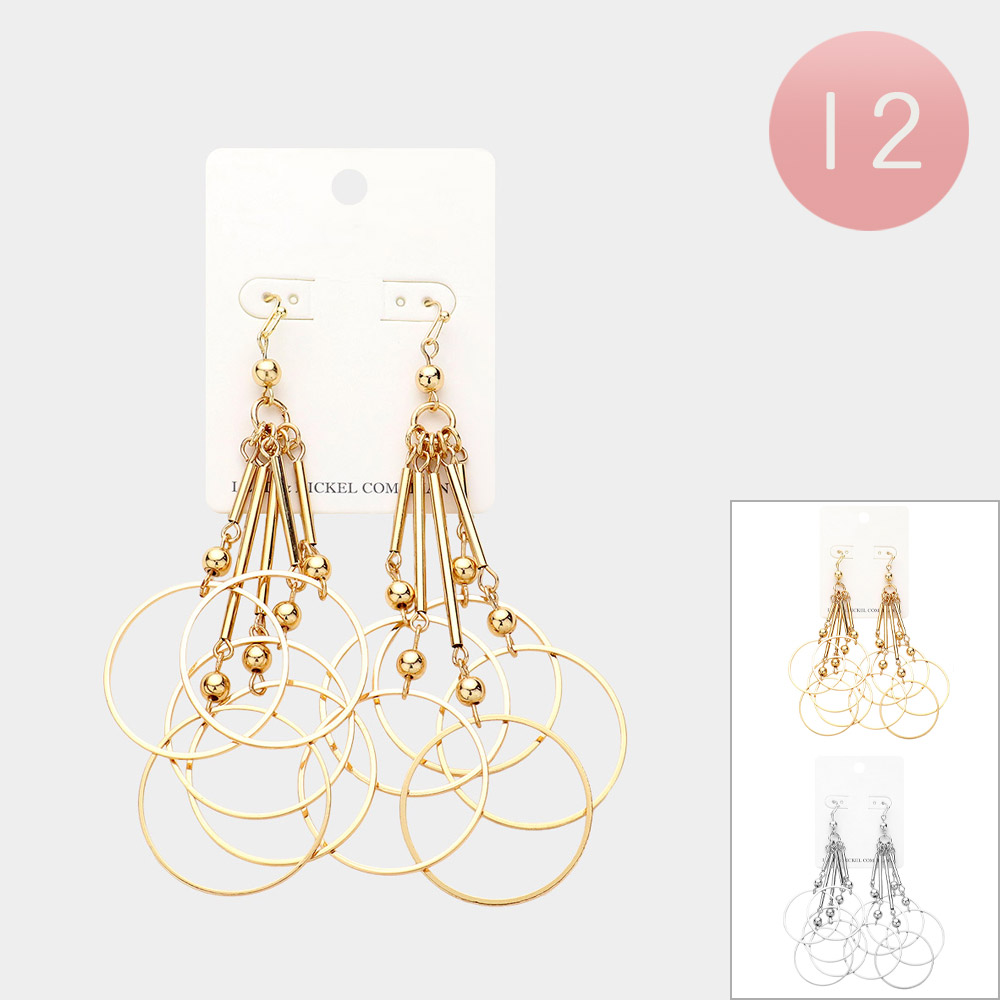 12Pairs - Oversized Abstract Metal Wire Cirlce Dangle Earrings