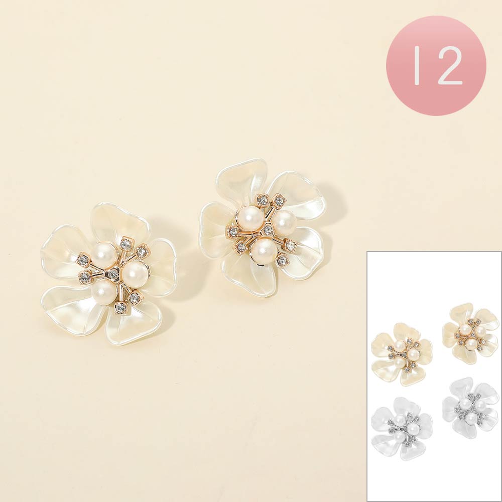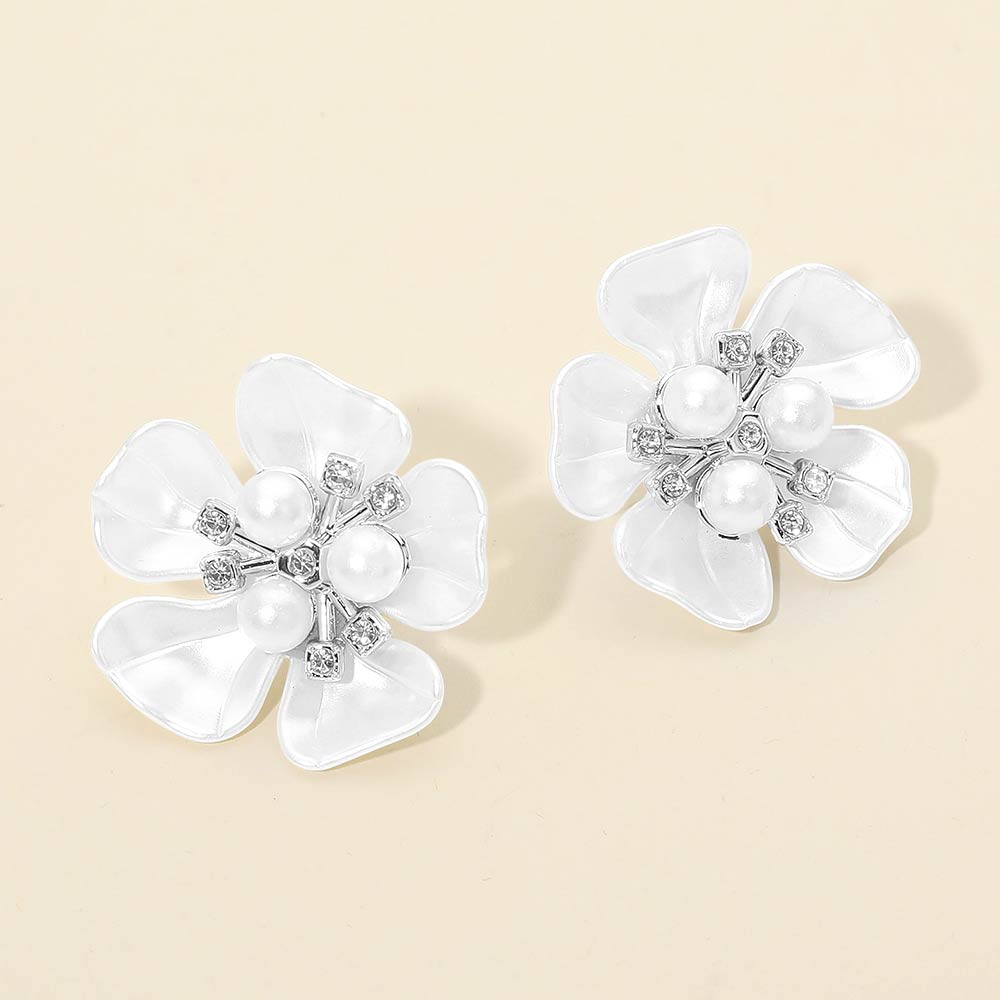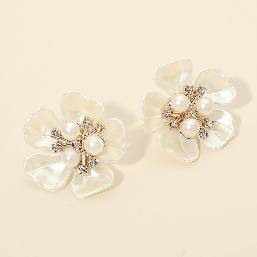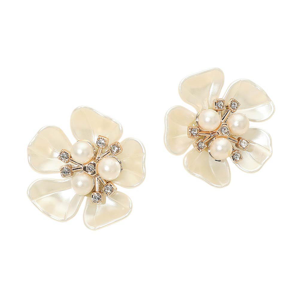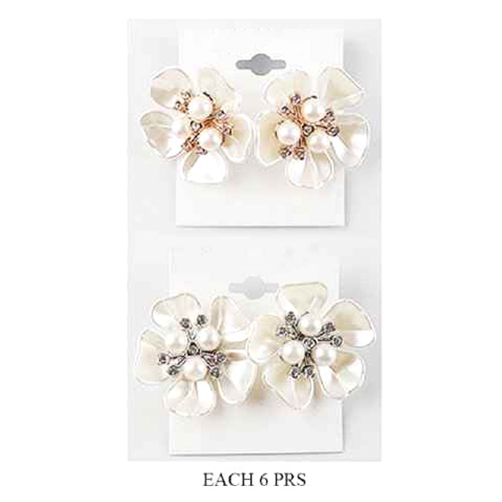 Details • Size : 1.4" X 1.4" • Post Back • These floral stud earrings feature layered petal shapes highlighted by clustered pearl-style accents and subtle sparkle details. Designed to feel feminine yet polished, they elevate everyday outfits and complement dressy looks with ease, making them a versatile accessory for work, events, or thoughtful gifting.