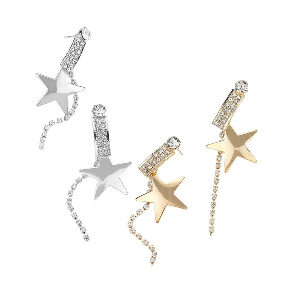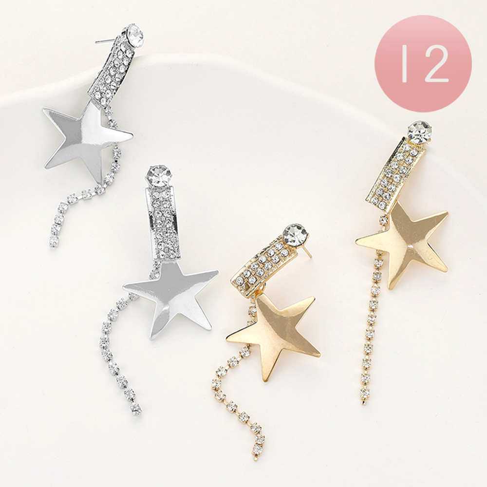 12Pairs - Rhinestone Paved Dropdown Star Dangle Earrings