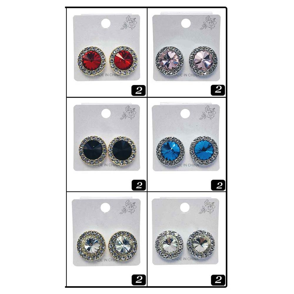 Details • Size : 0.8" X 0.8" • Post Back • Classic round stud earrings designed with a faceted center accent and a sparkling halo for timeless appeal. Comfortable and easy to wear, they suit everyday outfits, work looks, events, and special occasions. Ideal for gifting, accessorizing, and adding a polished finish to any jewelry collection.