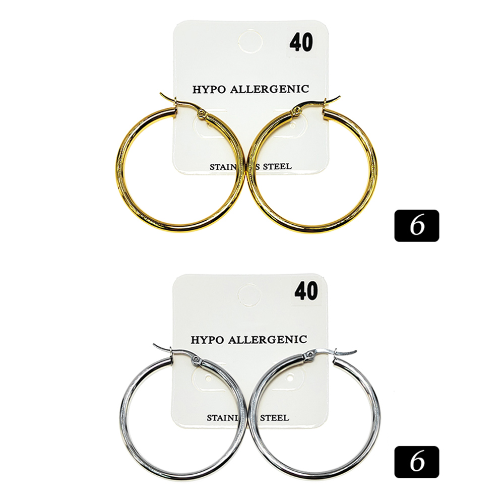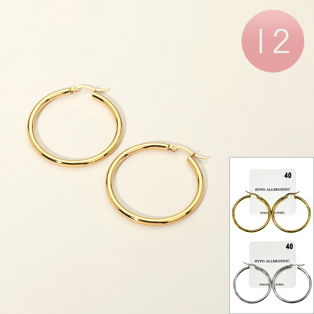 12Pairs - Stainless Steel Pin Catch Hoop Earrings
