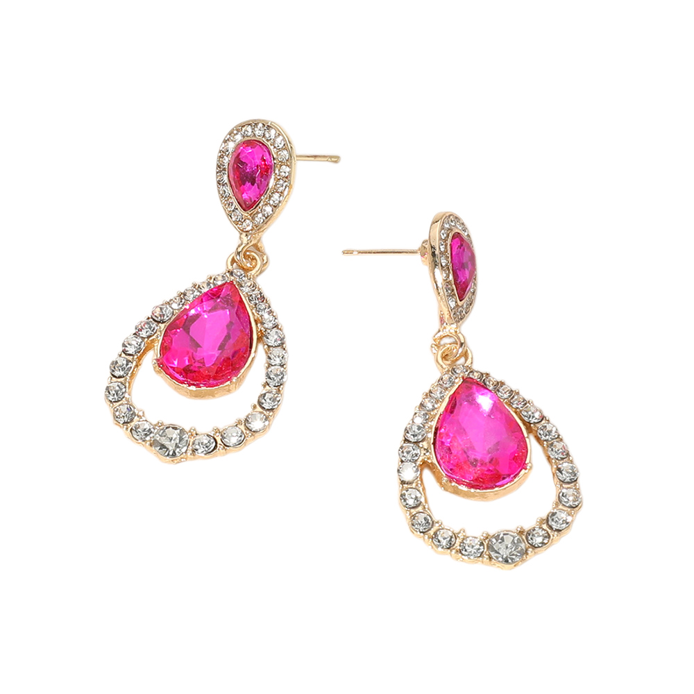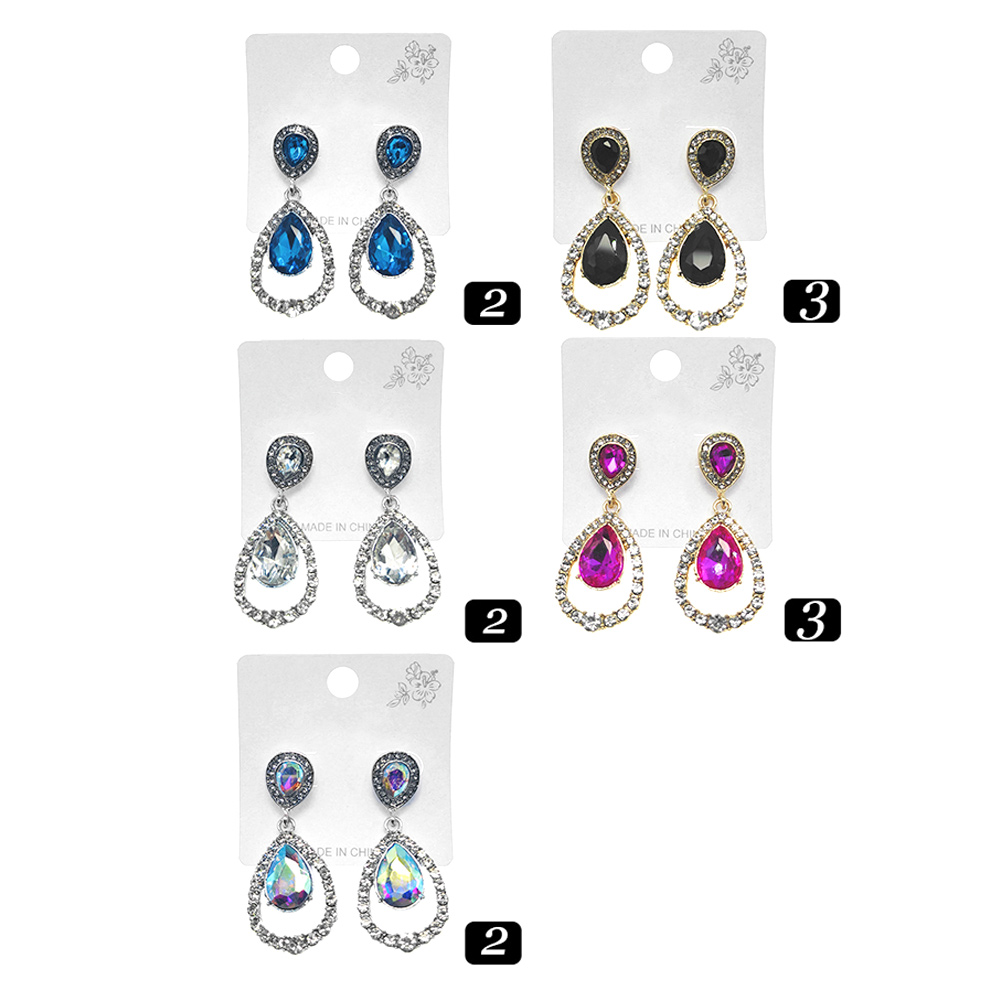 12Pairs - Teardrop Glass Stone Cluster Dangle Earrings