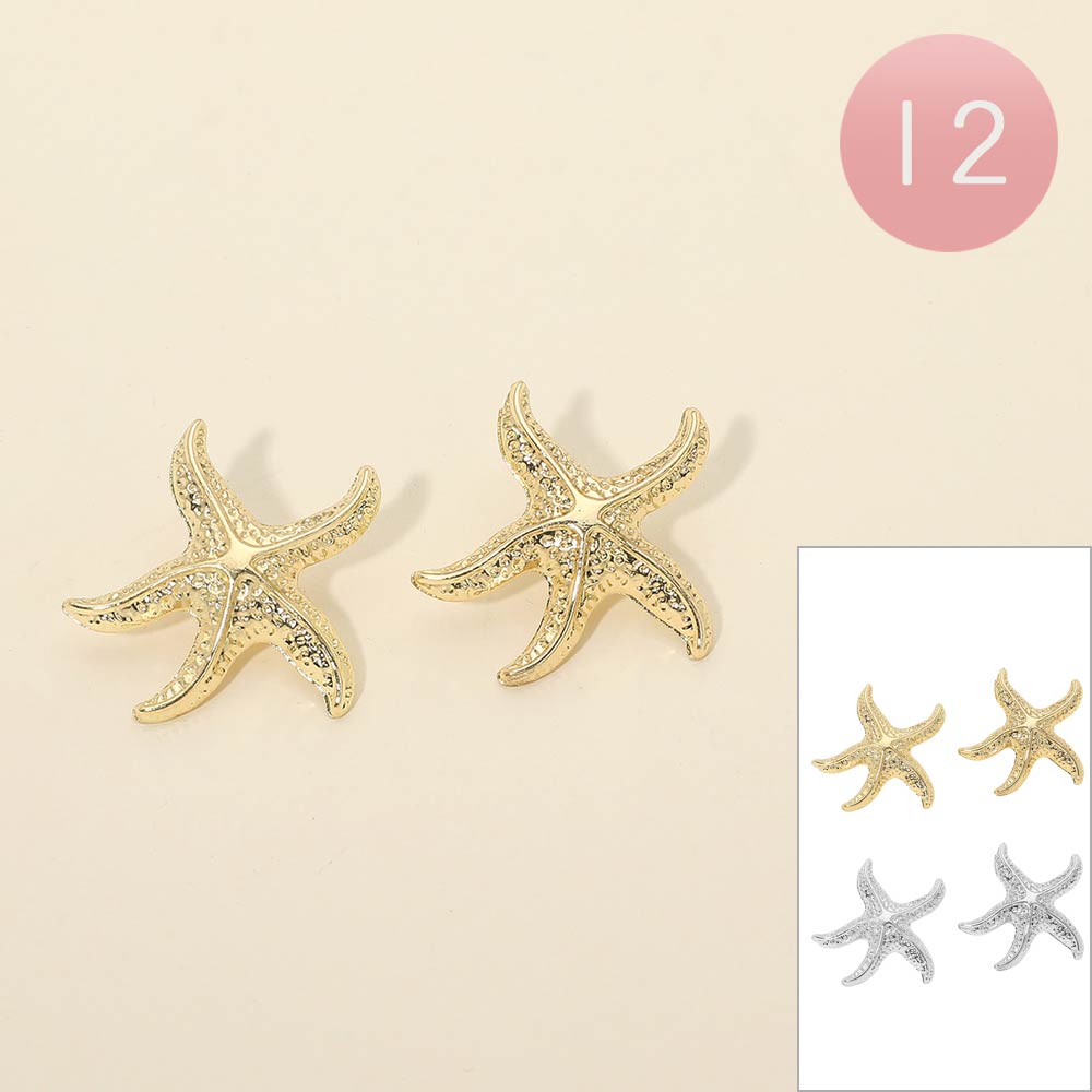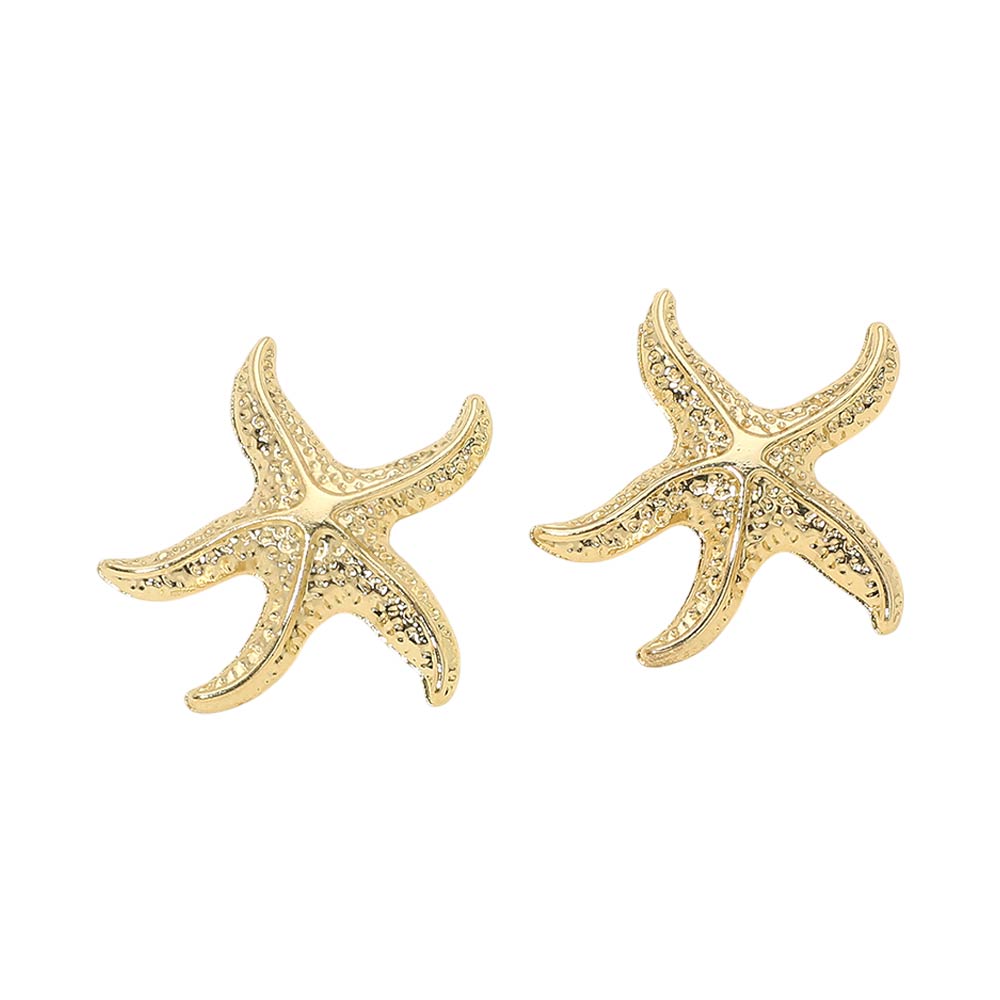 Details • Size : 1.4" X 1.4" • Post Back • These starfish stud earrings feature a sculpted ocean-inspired design with textured detailing that adds dimension and charm. Ideal for summer outfits, beach vacations, resort wear, or everyday styling, they offer a playful yet polished accent that pairs easily with casual and dressy looks.