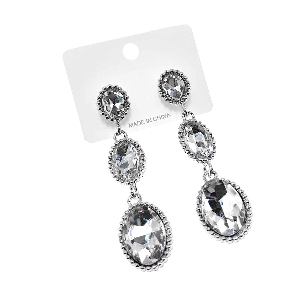 Details • Size : 0.7" X 2.75" • Post Back • Statement drop earrings featuring a cascading trio design with faceted accents that add graceful movement and sparkle. Lightweight and comfortable for all-day wear, ideal for dressing up casual looks or completing evening outfits, and perfect for gifting on special occasions or celebrations.