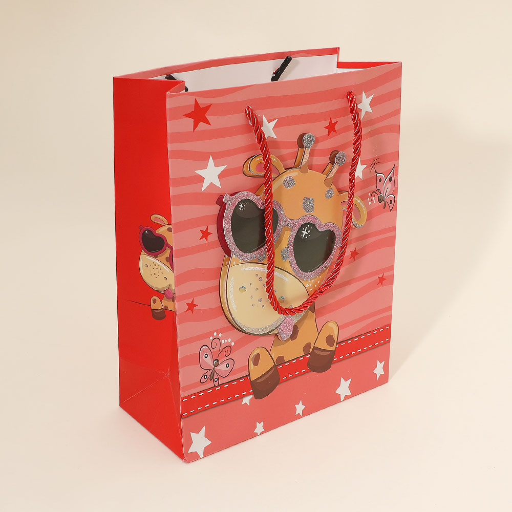 Details • Size : 7" X 9.25" X 3.35" • Top Handle Size : 4.75" L • Cartoon Character Gift Bag features a playful printed design, sturdy rope handles, and roomy interior for party favors, holiday treats, or small presents. Ideal for birthdays, classroom events, and retail packaging, this reusable bag adds fun presentation to any celebration.