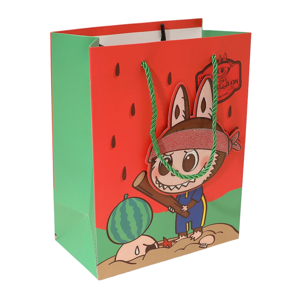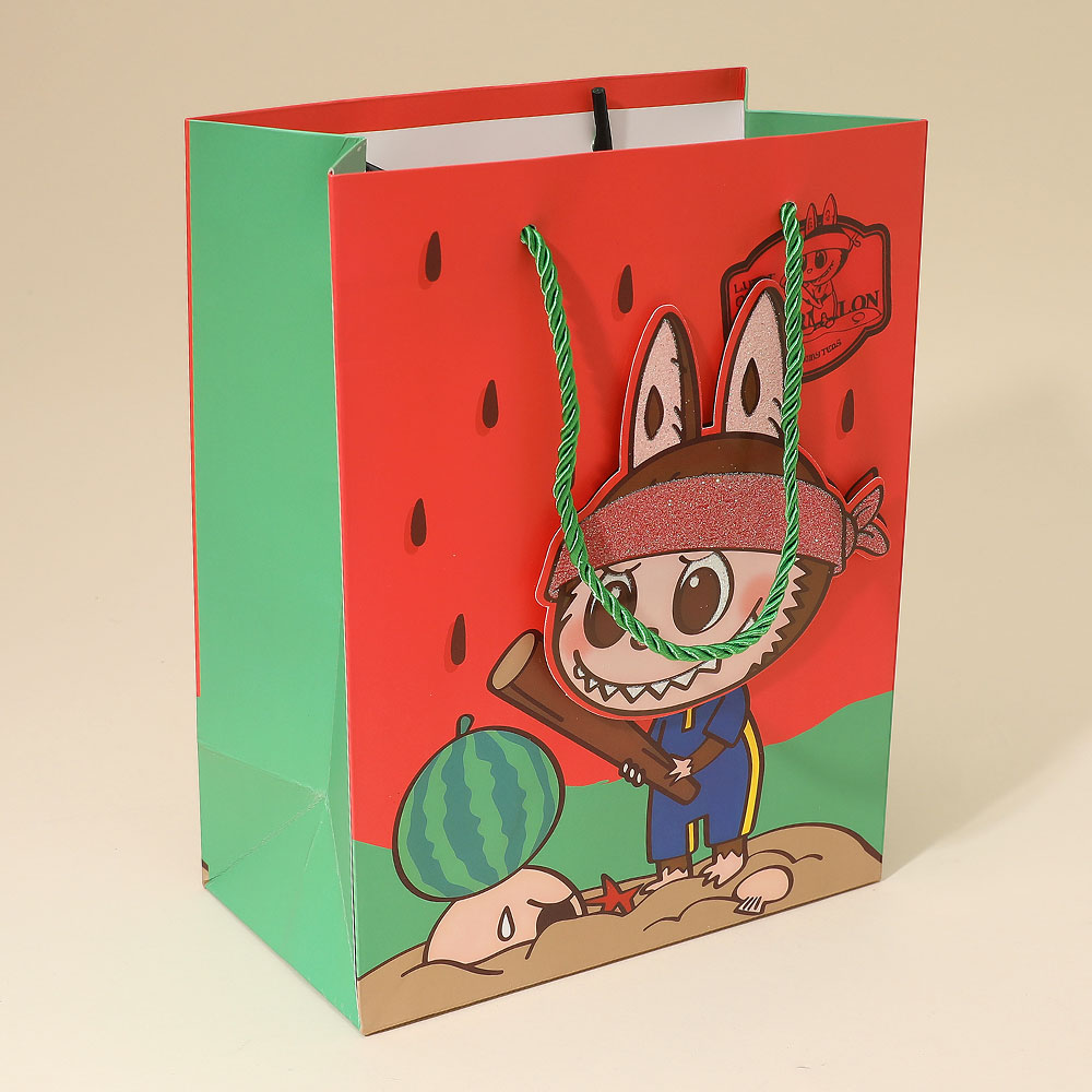 Details • Size : 9" X 7" X 4" • Top Handle Size : 3.75" L • This monster bunny character printed small gift bag features playful, story-inspired artwork that adds fun and excitement to any celebration. Its sturdy build and vibrant design make it perfect for birthdays, parties, and special surprises, offering a cheerful way to present thoughtful treats and small gifts.