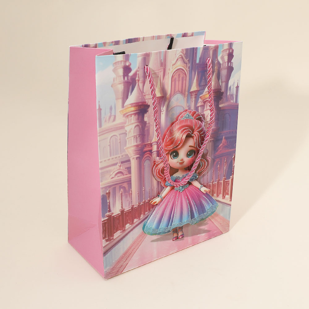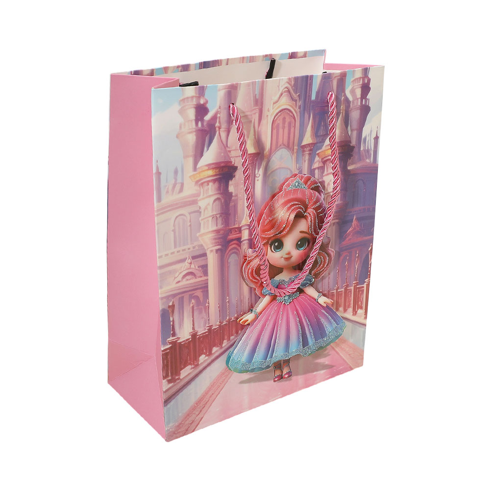 • Princess Castle Gift Bag showcases a charming fairy-tale character design with sturdy rope handles and a spacious interior for party favors, small toys, treats, or gifts. Great for birthdays, themed events, school parties, and retail presentation with reusable convenience.