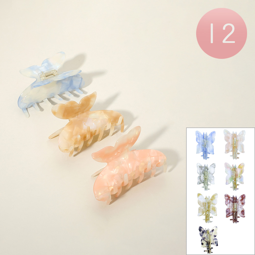 White Gold Dipped CZ Stone Paved Triple Butterfly Accent Cluster Drop Earrings