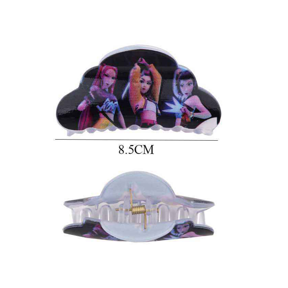 Details • Size : 3.5" X 1.75" • Stylish kpop demon hunters huntrix character-inspired hair claw clip designed to hold hair securely while adding a playful accent to everyday styling. Easy to use for casual wear, school, or outings, this novelty hair accessory appeals to trend-driven shoppers and performs well as a giftable, youth-friendly, and impulse-ready item.