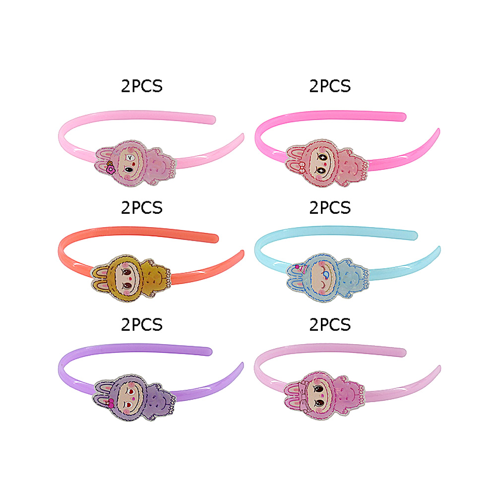 Details • Size : 1.3" H • Set of 12 headbands featuring playful cartoon character designs. Perfect for party favors, school events, birthdays, or daily wear, these lightweight headbands keep hair in place while adding a fun and cute accessory to any outfit.