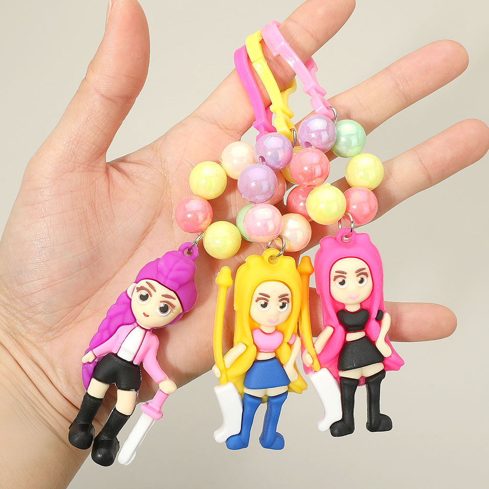 • K-pop demon hunters character figure beaded keychain charm featuring playful character pendants paired with rounded bead accents and a secure clip. Designed for bags, keys, and accessories, this fun collectible adds personality to everyday items and is ideal for fan gifts, impulse displays, and trend-driven retail assortments.