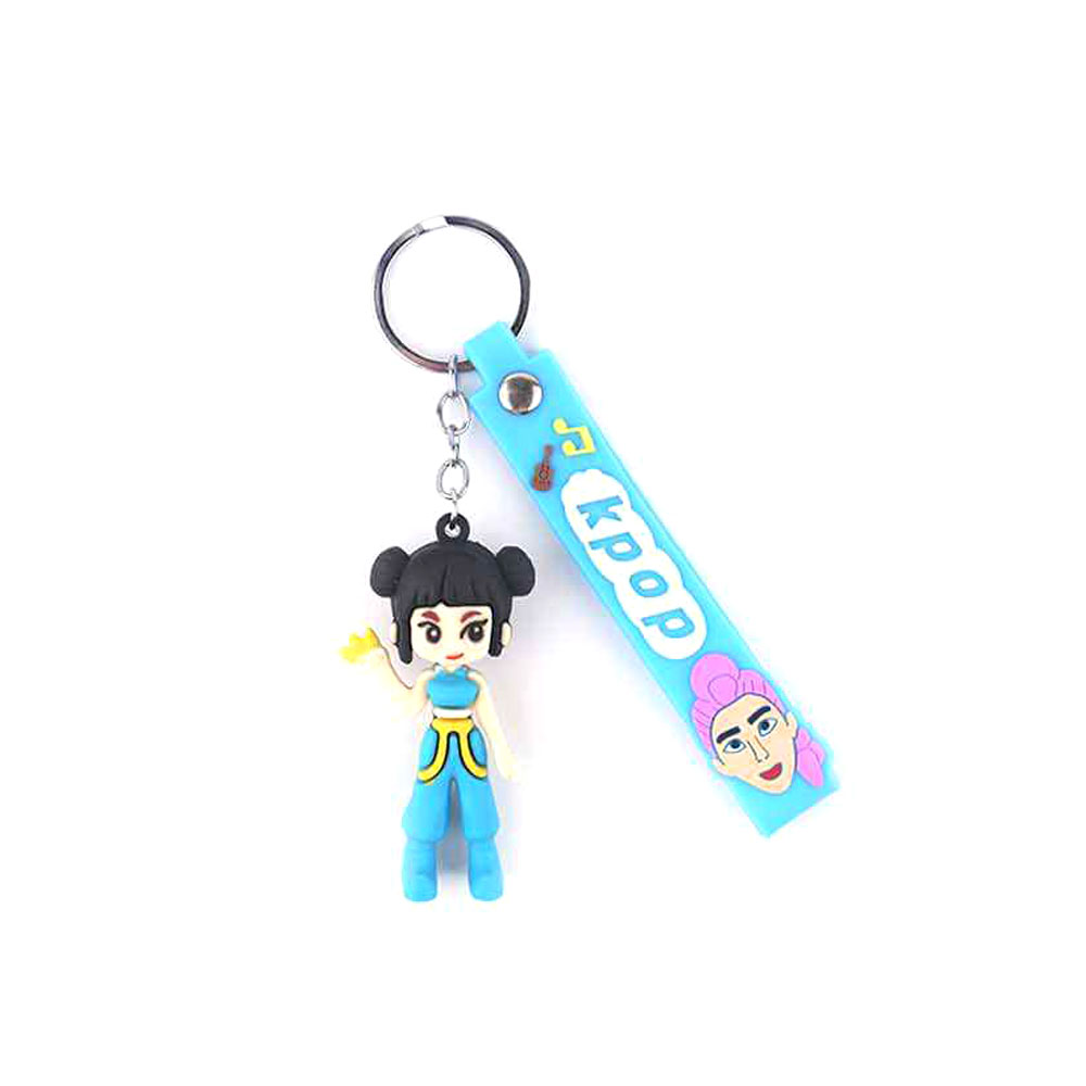 Details • Size : 5.25" L, 1.4" X 2.8" • K-pop demon hunters character figure keychain featuring playful cartoon-style idols with flexible straps and dangling figure details. Designed for easy attachment to keys, bags, or backpacks, this novelty accessory is ideal for fan merchandise, gift displays, trend-driven assortments, and pop culture–inspired retail collections.