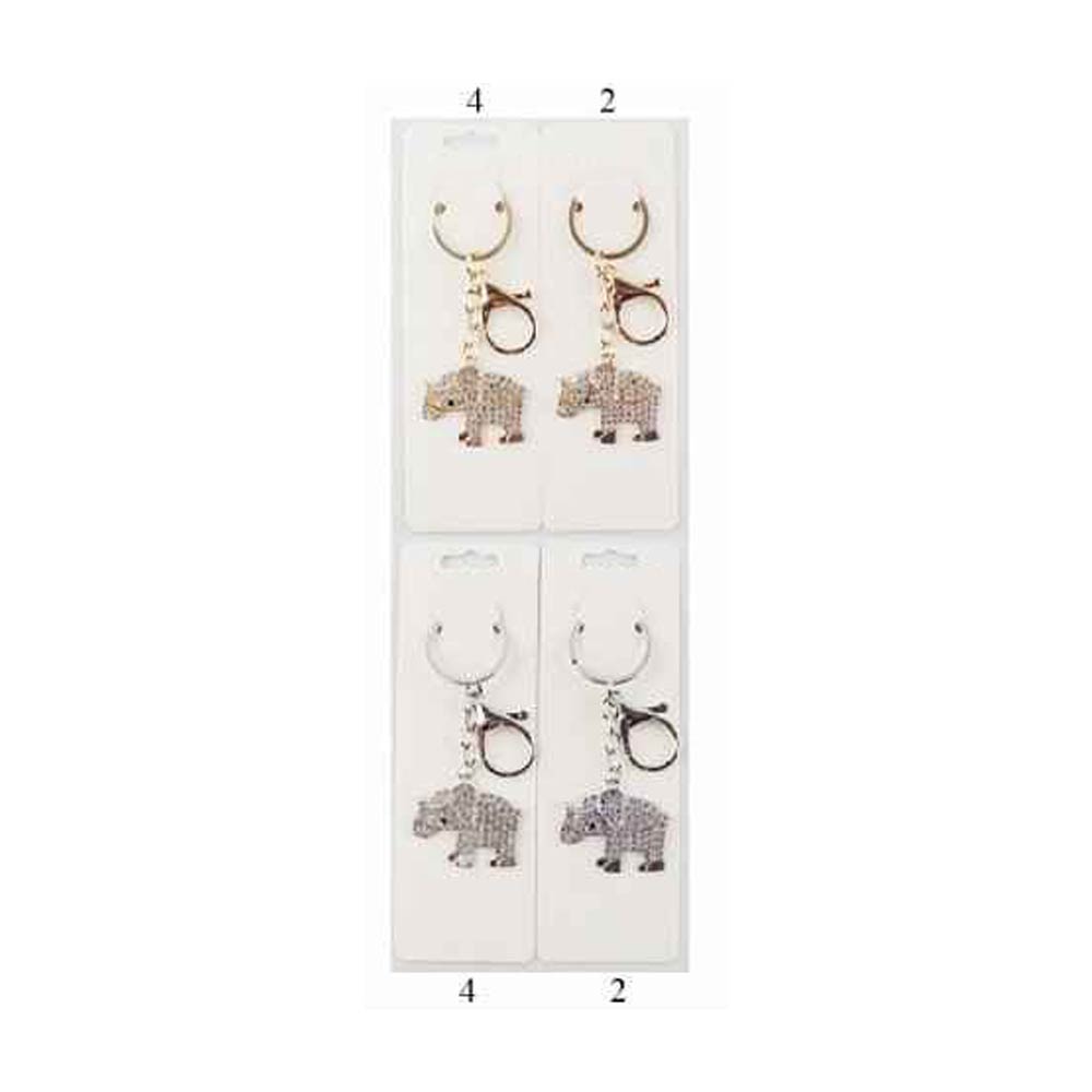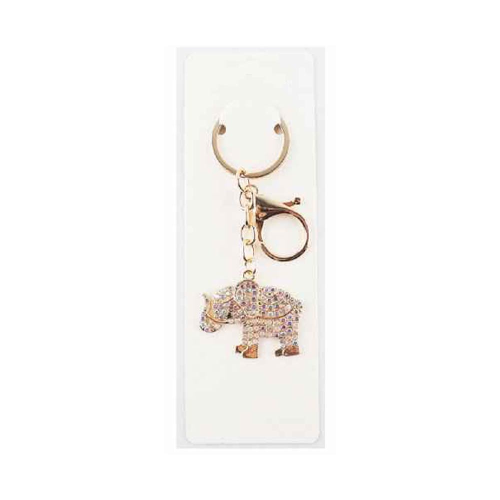 Details • Size : 3.6" L, 1.75" X 2.6" • Elephant charm keychain featuring full rhinestone detailing with a playful, eye-catching silhouette. Designed with a secure keyring and lobster clasp for easy attachment to keys, handbags, or backpacks. A charming accessory ideal for gifting, boutique displays, party favors, and everyday decorative use.