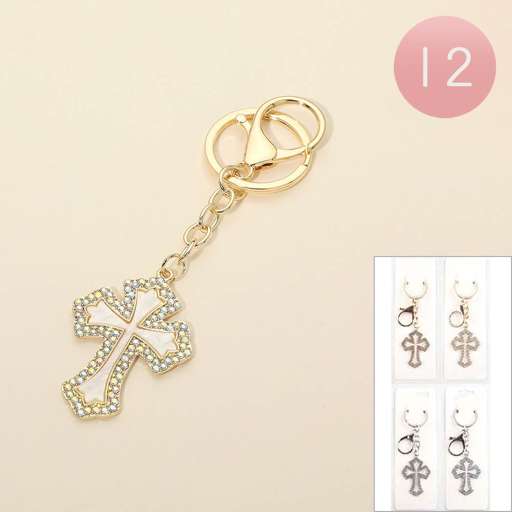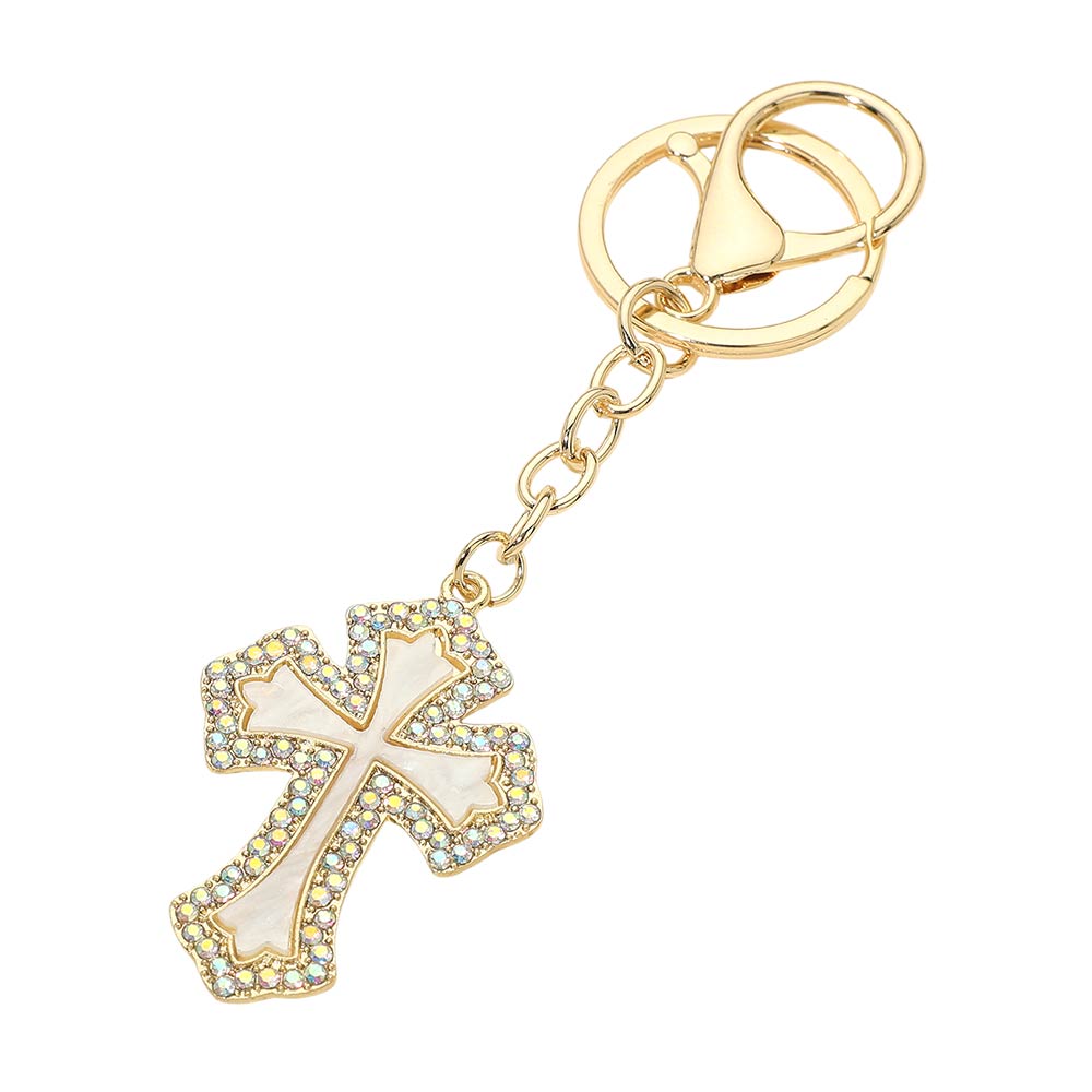 Details • Size : 4.25" L, 1.4" X 3.25" • Elegant cross charm keychain accented with shimmering rhinestones and a polished outline for standout appeal. Designed with a sturdy keyring and lobster clasp for easy attachment to keys, handbags, or totes. A meaningful accessory ideal for gifting, faith-inspired collections, and everyday decorative use.