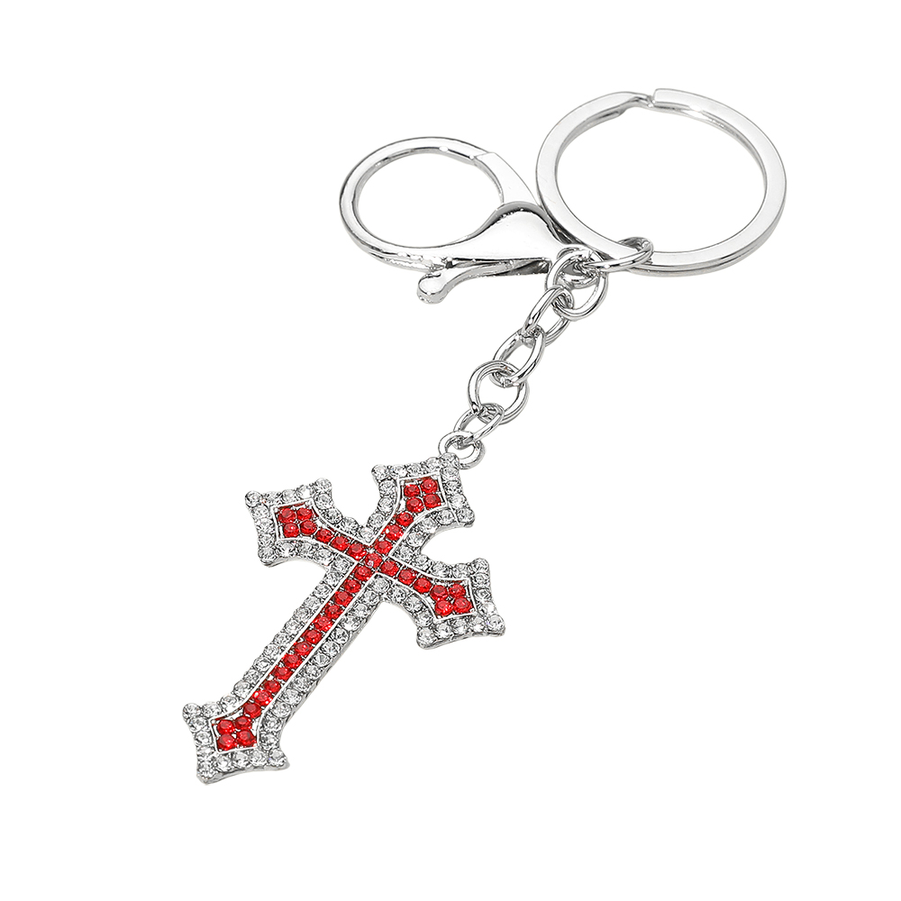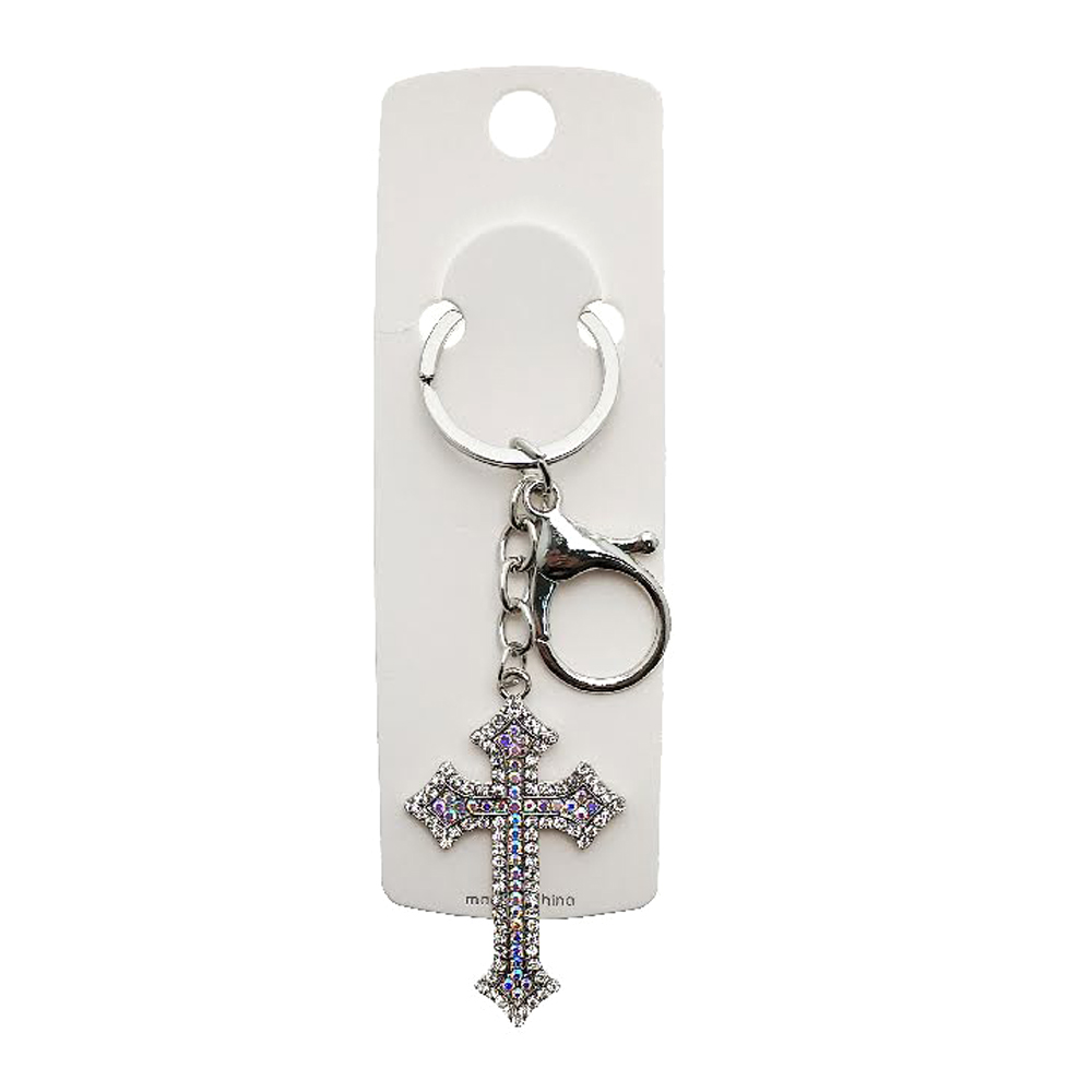 Details • Size : 4.8" L, 0.8" X 2" • Elegant cross keychain featuring a sparkling accent charm that adds a stylish touch to keys, bags, or accessories. Designed to be both meaningful and decorative, this keychain makes a thoughtful gift or a chic personal accessory for everyday use.