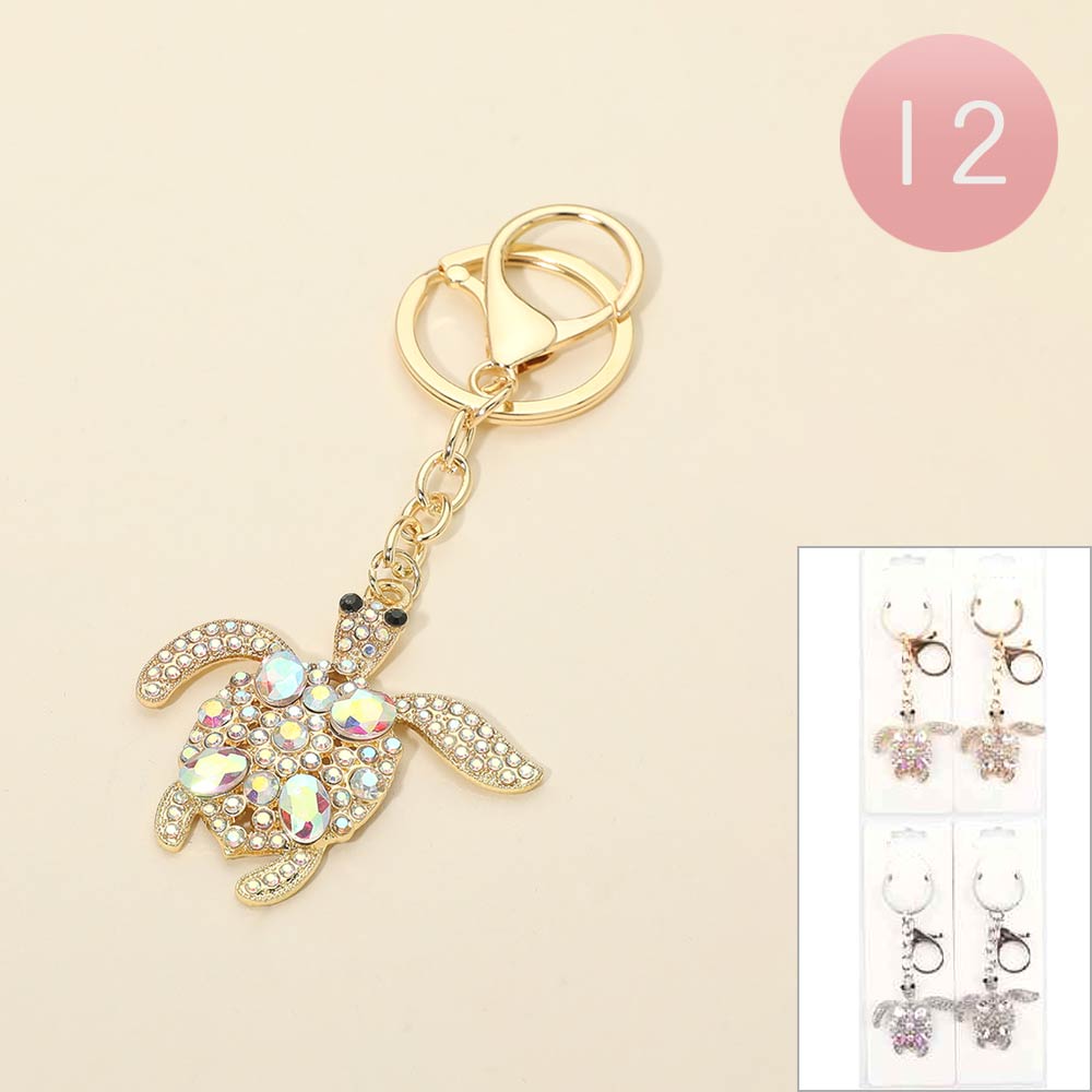 Details • Size : 4.25" L, 2" X 3.2" • Sparkling sea turtle charm keychain accented with crystal details and a playful silhouette. Designed with a sturdy keyring and lobster clasp for easy attachment to keys, bags, or backpacks. A charming accessory ideal for gifting, beach-themed displays, and everyday style.