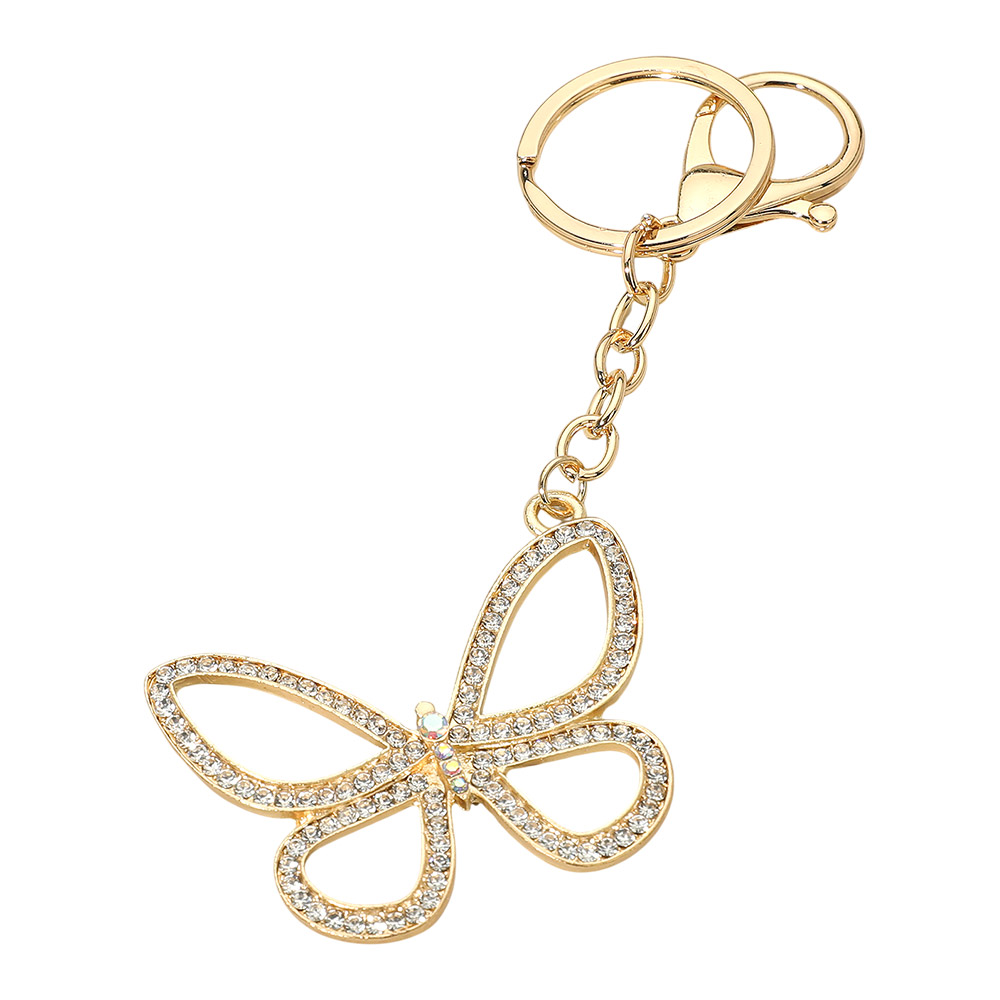 Details • Size : 2.25" X 3.75", 4.75" L • Bring a touch of glamour to your accessories with this Elegant Rhinestone Butterfly Keychain. Designed with shimmering crystal details, it adds a refined sparkle to keys, handbags, or backpacks. Perfect as a chic everyday accessory or a thoughtful gift for someone special. • Lead and Nickel Compliant
