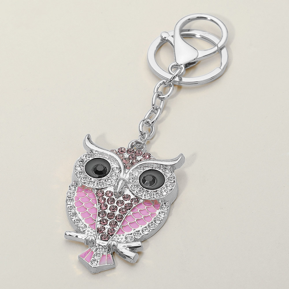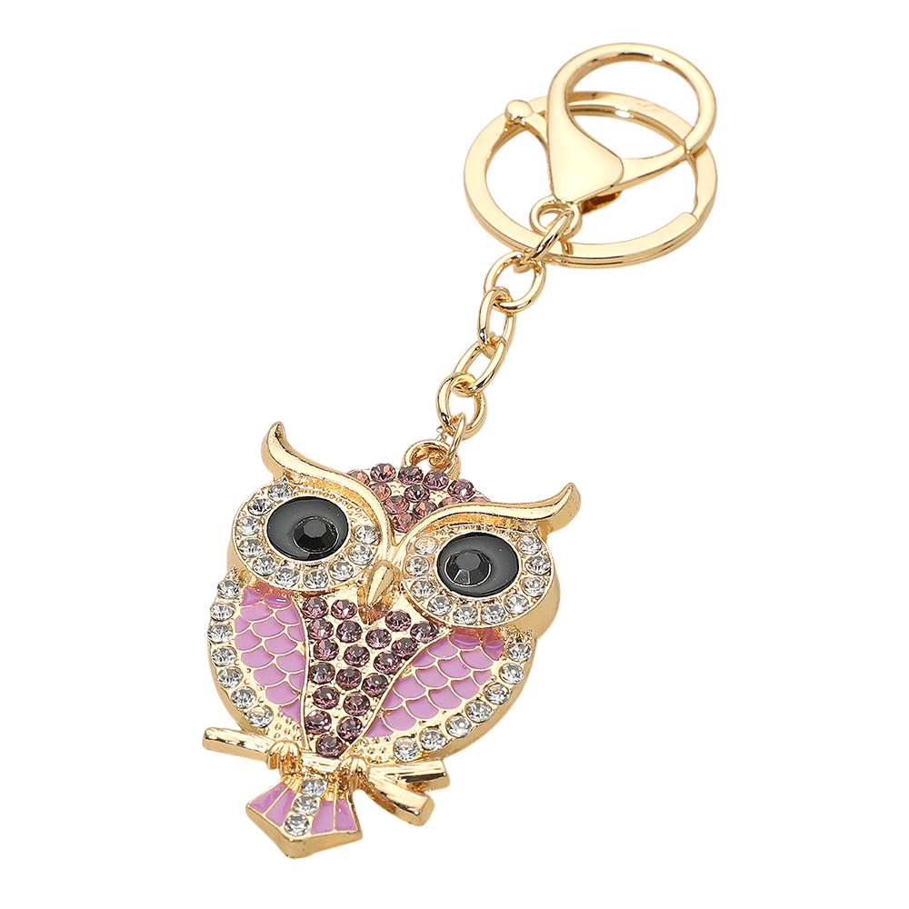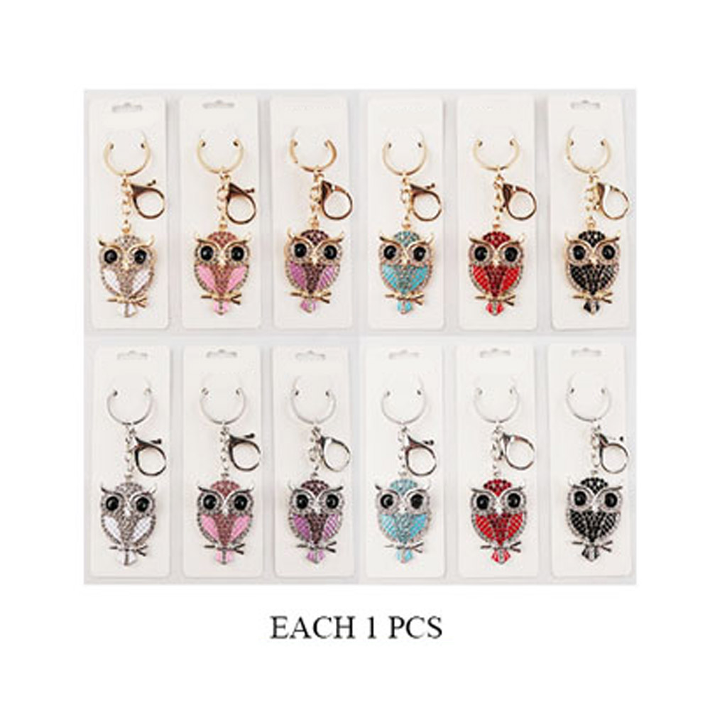 Details • Size : 1.5" X 3.5", 4.5" L • Add a touch of sparkle to your everyday accessories with this Crystal Owl Keychain. Featuring a beautifully detailed owl design with shimmering rhinestones, it’s perfect for decorating handbags, backpacks, or car keys. A chic and charming gift for any occasion. • Lead and Nickel Compliant