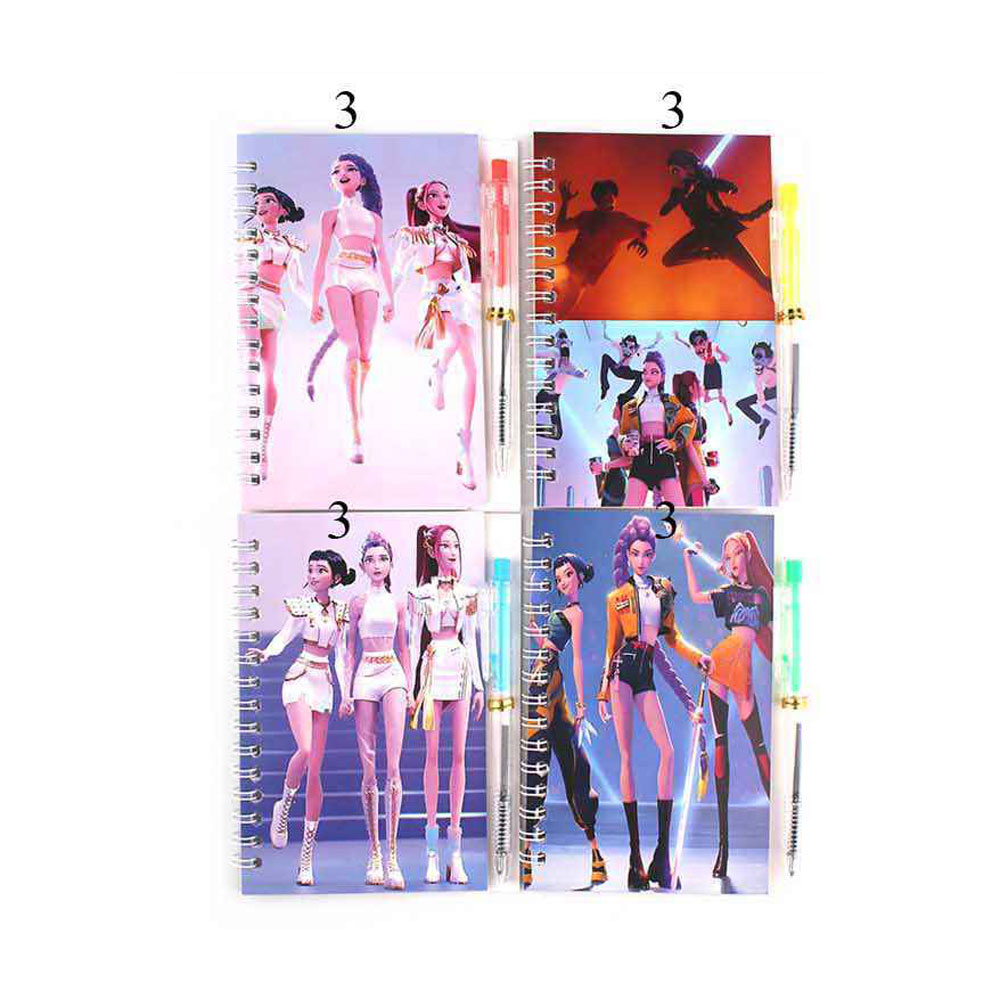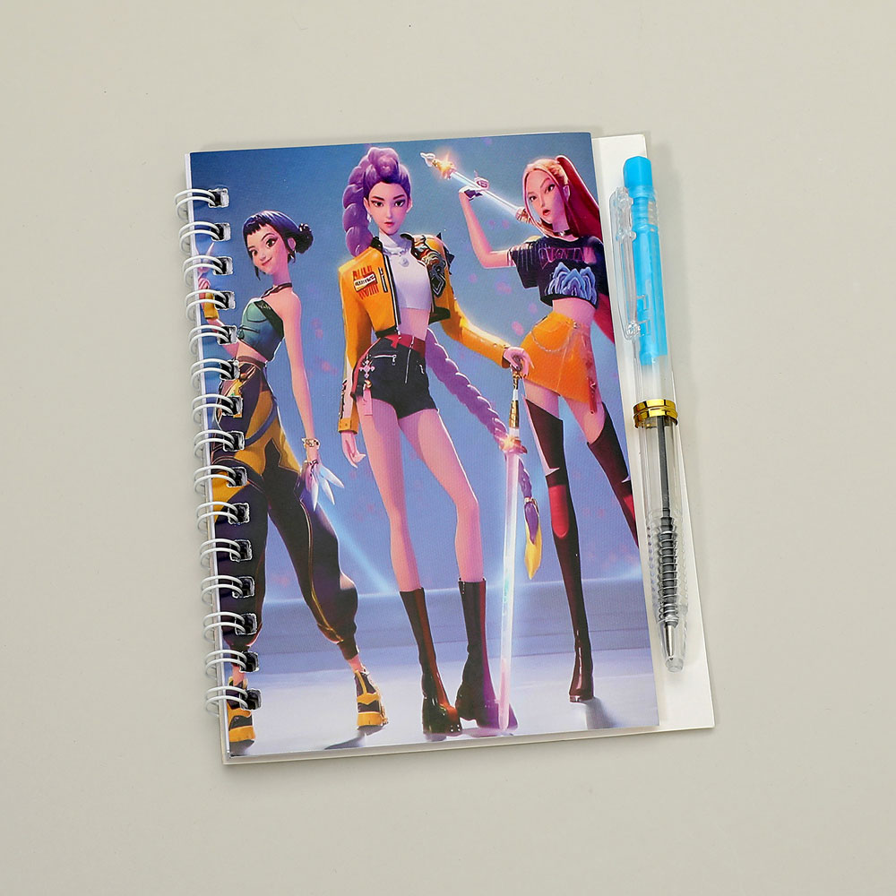 Details • Notebook Size : 3.6" X 5.6" • Ball Pen Size : 4.8" L • K-pop demon hunters spiral notebook featuring dynamic character artwork and a matching pen. Designed for notes, journaling, and everyday writing. A fun stationery item for fans, gift shops, and novelty assortments that adds personality to school, office, or creative use.