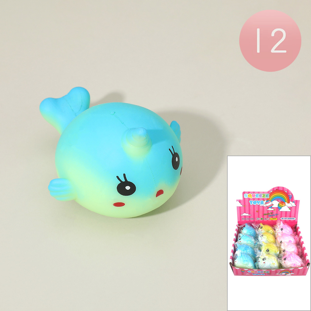 Details • Size : 3.75" X 2.3" • Adorable narwhal-themed squishy toy set featuring 12 soft and squeezable figures. Perfect for stress relief, party favors, or playtime fun. Each piece offers a cute ocean-inspired design that makes it a delightful collectible and sensory toy for kids and adults alike.