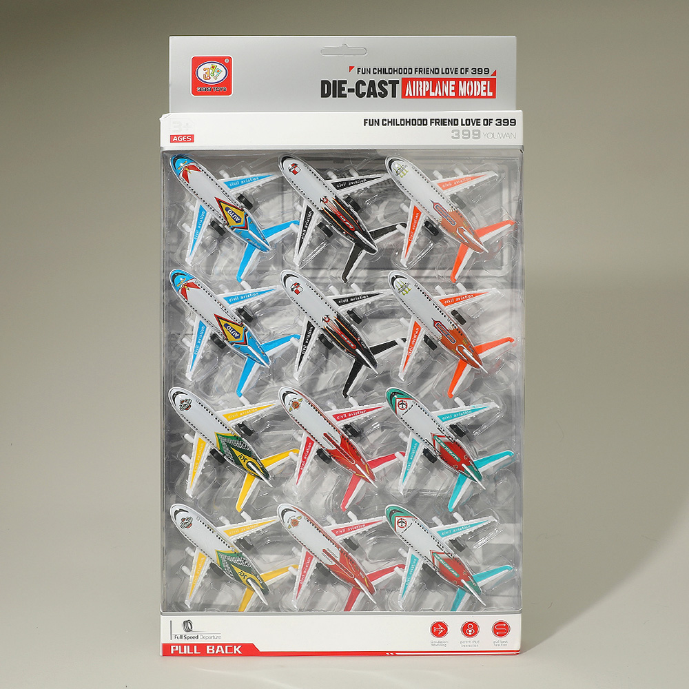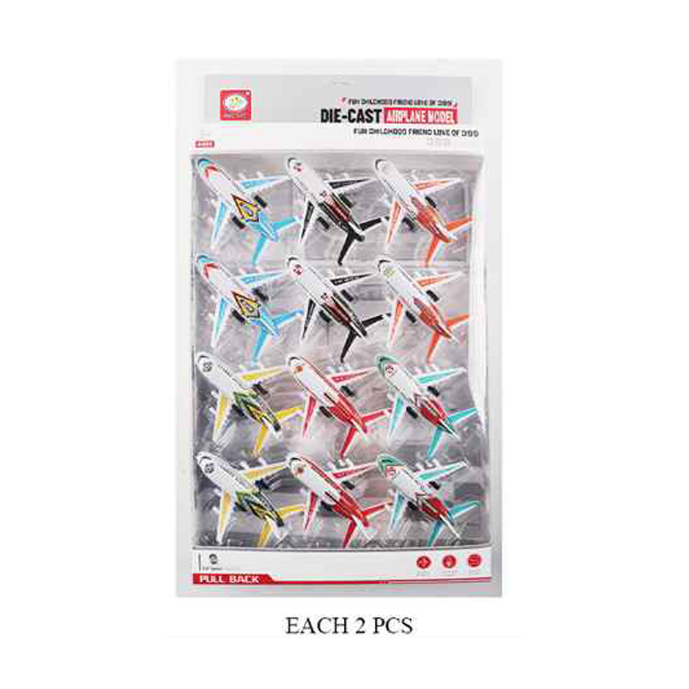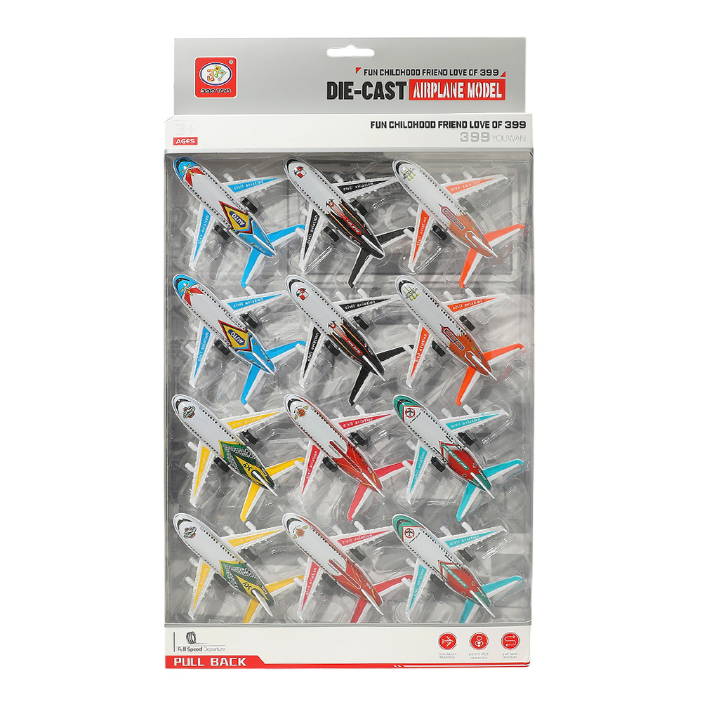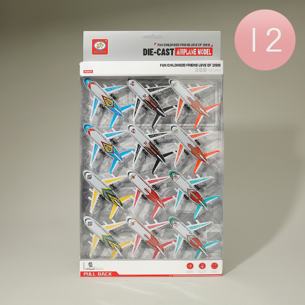Details • Size : 3.25" X 3.5" • Bring flight fun to playtime with this 12-pack die-cast airplane model set. Each pull-back jet plane is designed for realistic play, making it perfect for kids’ imaginative adventures, party favors, and collectible gifts.