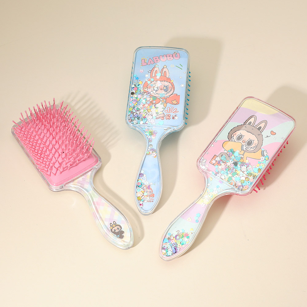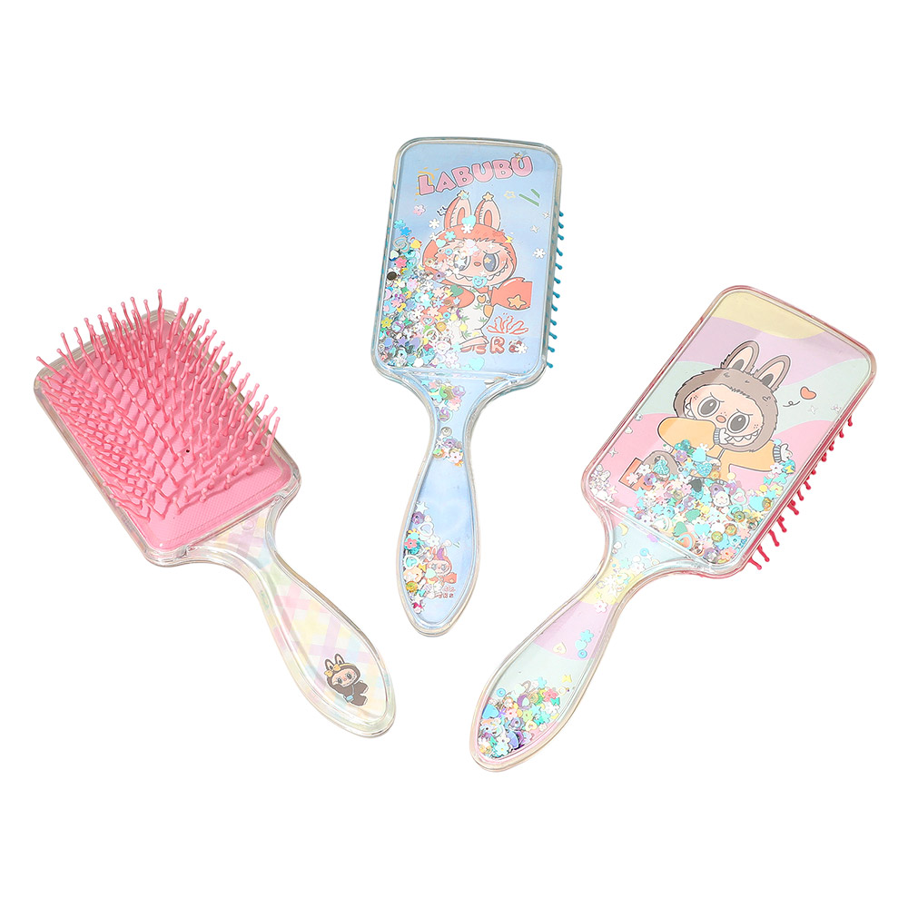• Make hair styling fun with this character glitter paddle hair brush. Designed with adorable cartoon graphics and floating glitter, it detangles gently while adding sparkle to your routine. Perfect for kids or collectors, this cute brush combines practicality with playful charm.