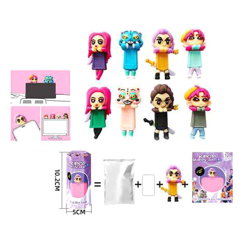 Details • Size : 2" X 4" • K-pop demon hunter blind box figure charm designed for surprise collectibles and fan excitement. Each mystery character features a playful mini figure with an attachable charm style, perfect for bags, keys, and displays. A fun option for fan gifts, trend-focused assortments, and impulse retail collections.