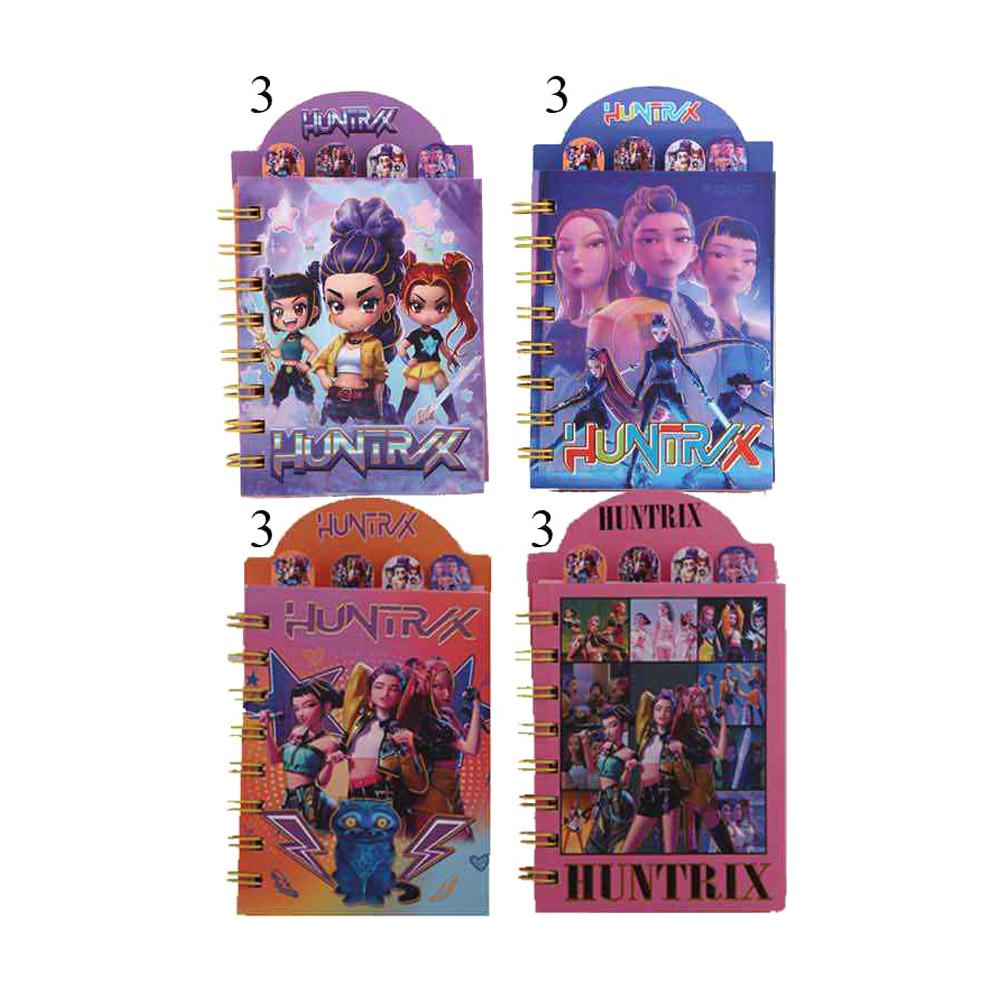 Details • Size : 3.5" X 4.5" • Mini spiral notebook featuring a dynamic kpop demon monster huntrix character collage cover, ideal for notes, journaling, lists, and sketches. Compact and easy to carry, it’s perfect for school supplies, party favors, gift shops, and pop culture–inspired stationery collections that encourage everyday writing and creativity.