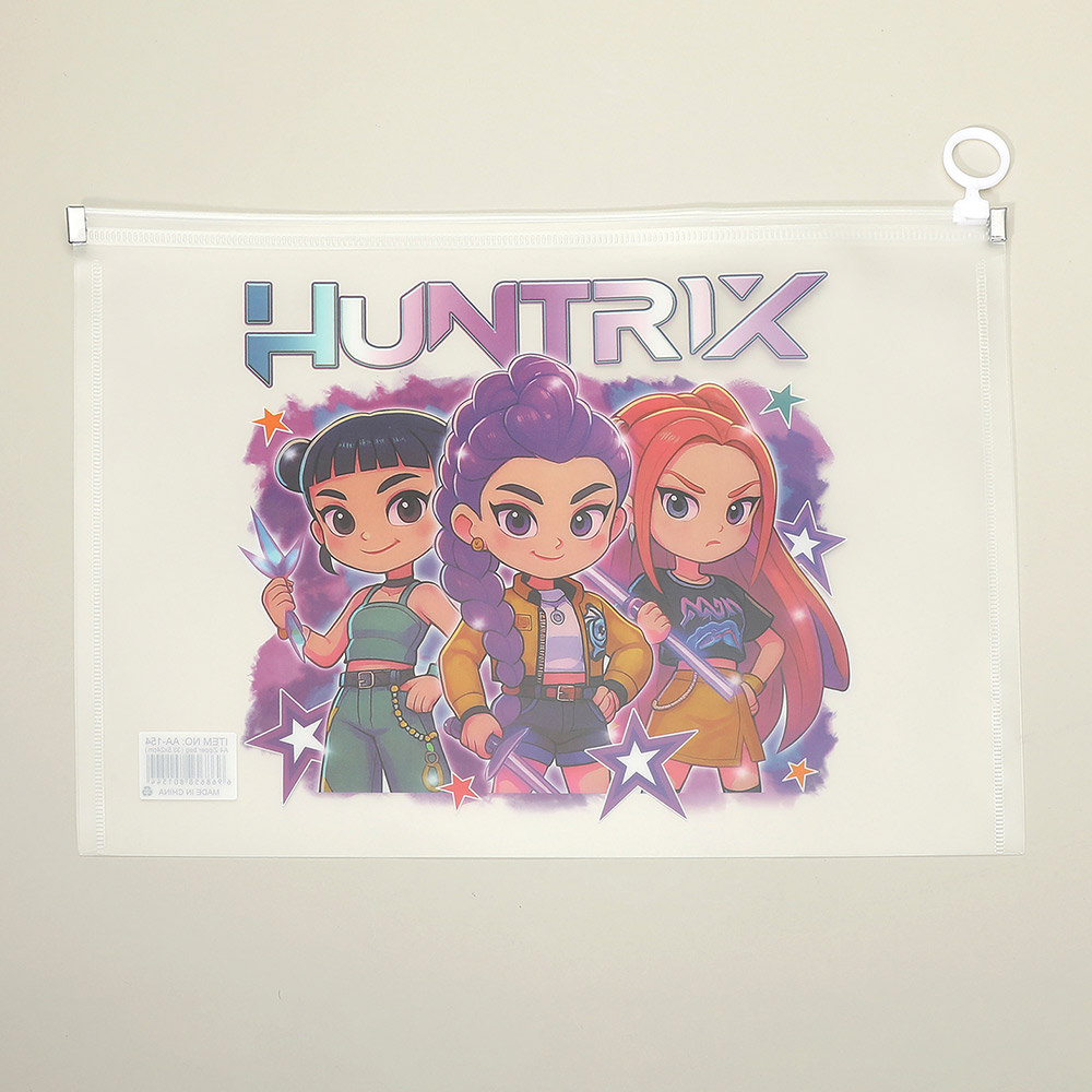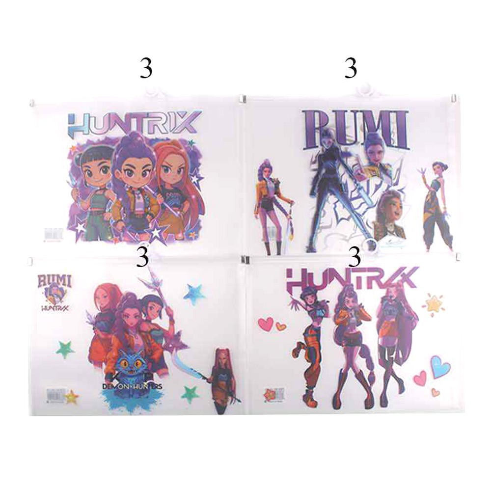 Details • Size : 13.25" X 9.5" • Huntrix character themed zipper document pouch featuring bold illustrated artwork. Designed to store papers, notebooks, stationery, and small essentials while keeping items organized and protected. A practical accessory for school, travel, offices, gifting, and fan-inspired retail collections.