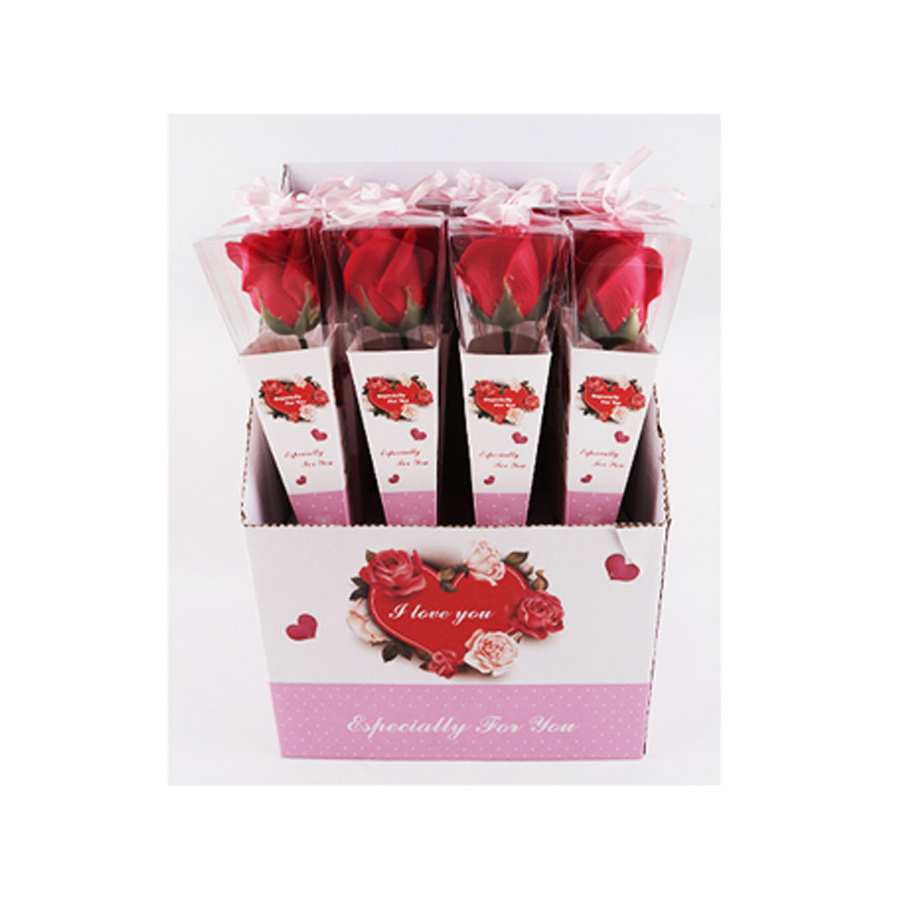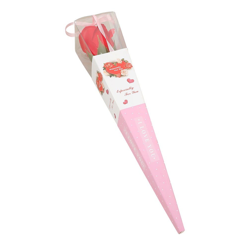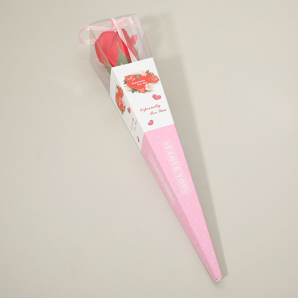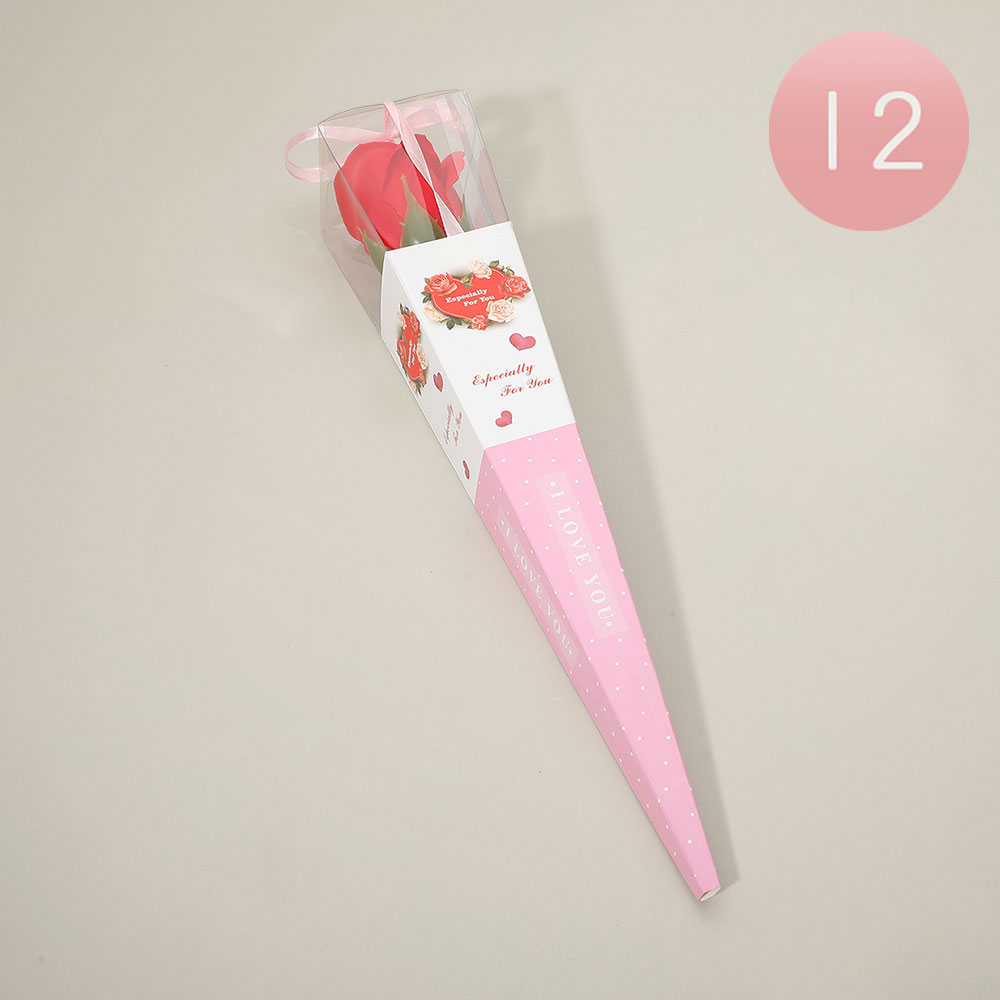 Details • Size : 2" X 1.15" • Set of 12 single soap roses presented in elegant cone boxes with “I Love You” design. Perfect for gifting on Valentine’s Day, anniversaries, or special occasions. A romantic and fragrant keepsake that beautifully expresses affection and appreciation in a stylish package.