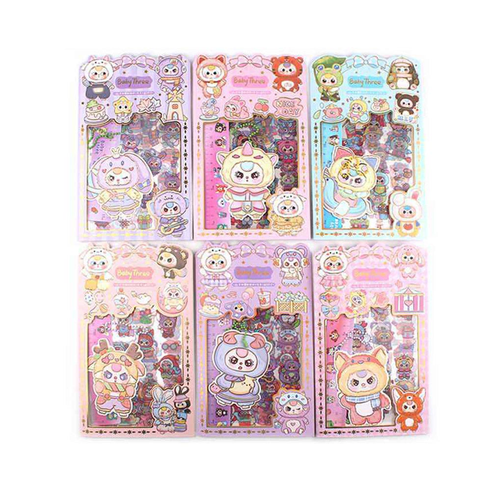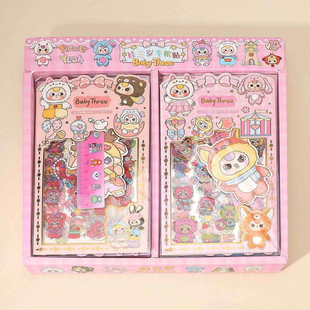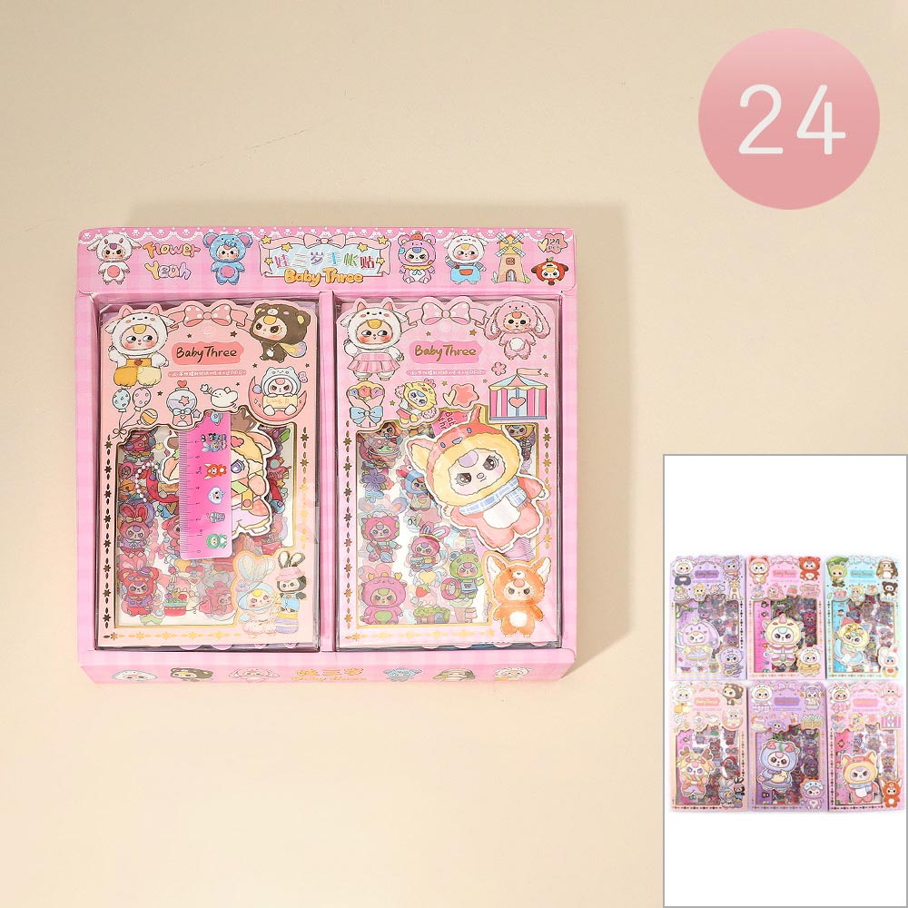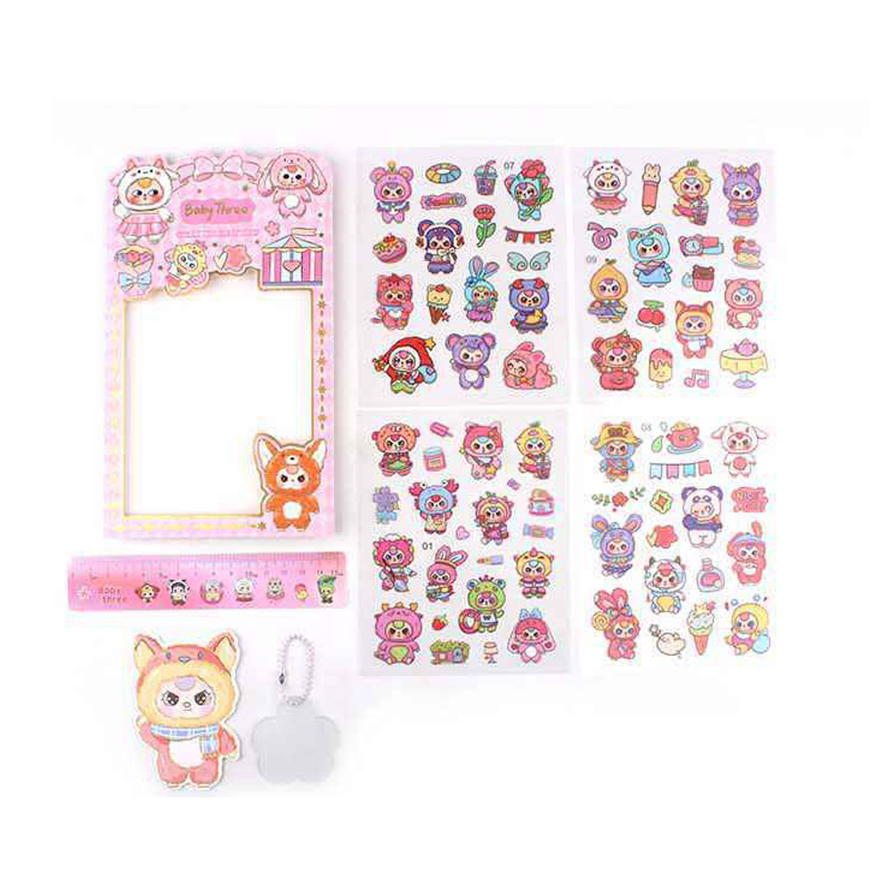 Details • Sticker Sheet Size : 4.7" X 6" • Character Card Size : 3.5" L • Ruler Size : 1.25" X 6.5" • Clear Tag Size : 3.25" L • Delight young creators with this adorable character stationery sticker gift set. Packed with themed stickers, pens, and accessories, it inspires fun and imagination during study or playtime. Perfect for gifting, party favors, or school supplies, it adds charm and creativity to every desk.
