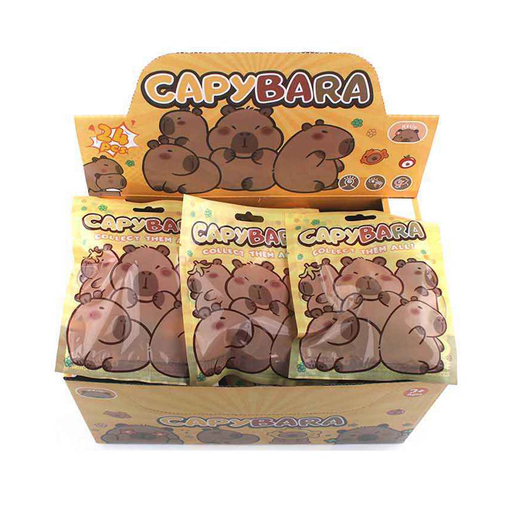 Details • Size : 4.5" X 5.8" • This capybara surprise figure blind bag set includes 24 individually packaged mystery figures designed for collecting, trading, and gifting. Ideal for party favors, classroom rewards, prize boxes, and themed displays, each blind bag adds excitement and imaginative play, making it a fun novelty toy assortment for kids and collectors.
