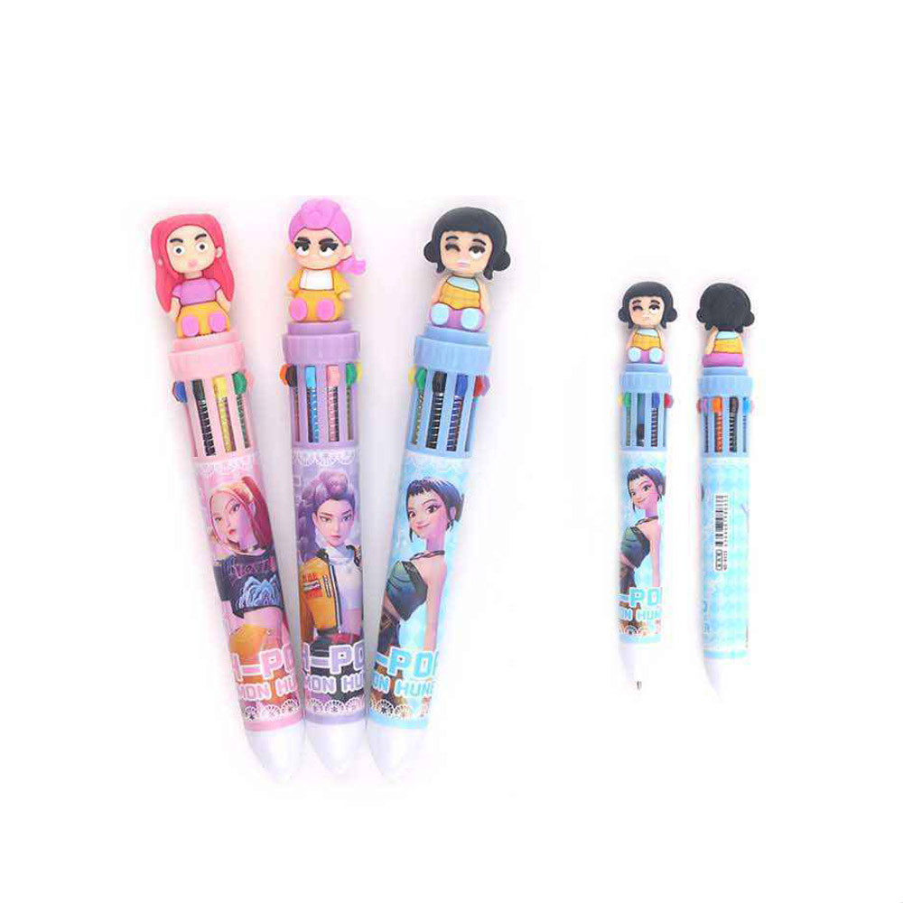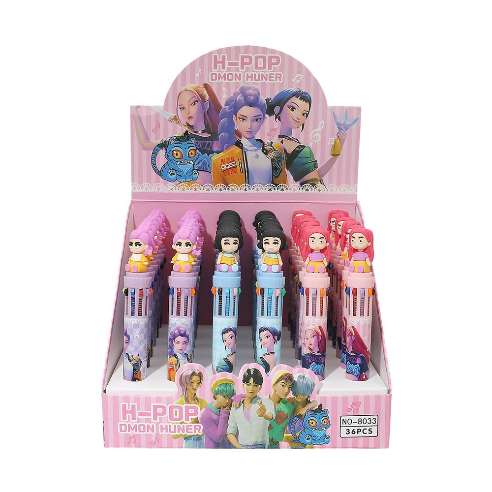 Details • Size : 6" L • This Kpop Demon Hunters character multi-ink pen display set includes collectible figure-top pens in assorted designs, ideal for stationery shops, gift stores, and pop culture displays. Designed for smooth writing and visual appeal, these novelty pens attract fans, students, and collectors while boosting impulse sales at checkout. Perfect for bulk retail, party favors, and themed merchandise collections.