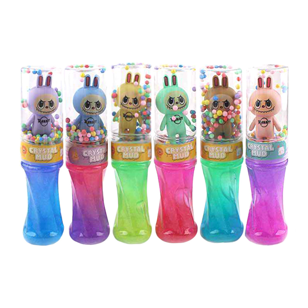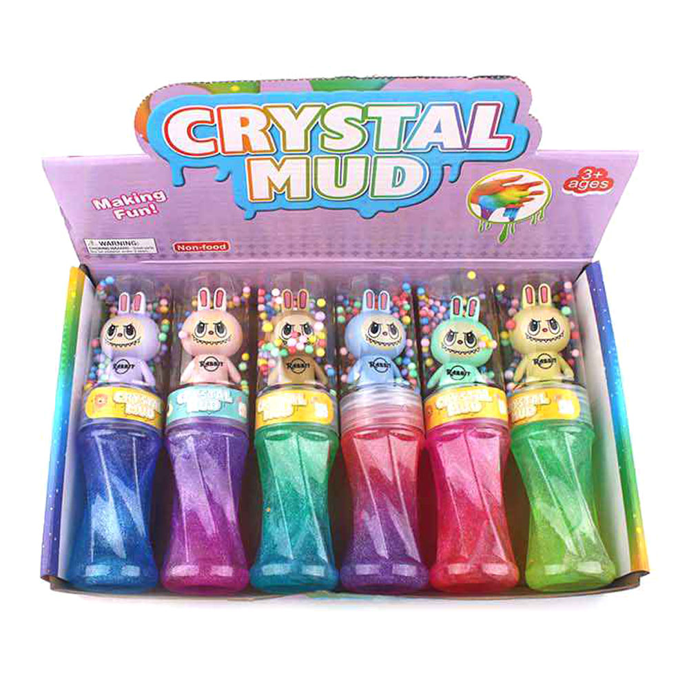 Details • Size : 7.5" L • Crystal mud slime toy set featuring cute bunny character containers filled with glitter slime and foam beads. Stretchy, soft, and fun to squish, perfect for sensory play, party favors, or stress relief. A playful and colorful way for kids to enjoy creative hands-on entertainment.
