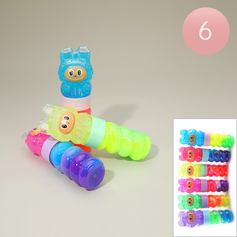 Details • Size : 7.75" L • The Crystal Mud Monster Bunny Slime Tube Set includes colorful, stretchy slime in adorable bear-shaped containers. Perfect for creative play, stress relief, and sensory fun, this set provides hours of squishy entertainment. Ideal for kids’ gifts, party favors, or playful desk toys.