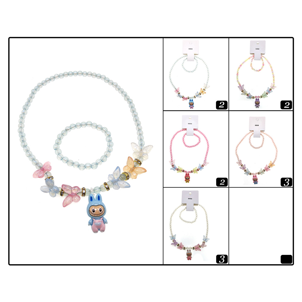 12 SET OF 2 - Kids Monster Bunny Pendant Butterfly Beaded Jewelry Set