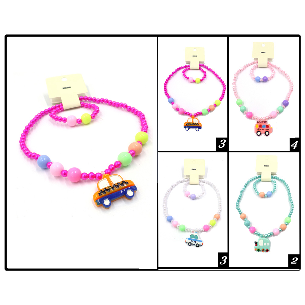 Details • Necklace Size : 9" L / Stretchable • Pendant Size : 1.1" L • Bracelet Size : 0.5" H / Stretchable • Charming kids’ jewelry set featuring a playful vehicle charm on a beaded necklace and matching bracelet. This 12-piece pack is ideal for party favors, birthday surprises, or everyday fun, making it a delightful accessory choice for children who love creative and themed jewelry.