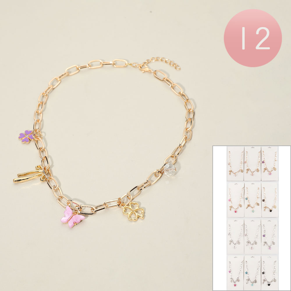 12PCS - Butterfly Flower Bow Clover Charm Station Paperclip Chain Necklaces 12PCS - Butterfly Flower Bow Clover Charm Station Paperclip Chain Necklaces 12PCS - Butterfly Flower Bow Clover Charm Station Paperclip Chain Necklaces 12PCS - Butterfly Flower Bow Clover Charm Station Paperclip Chain Necklaces